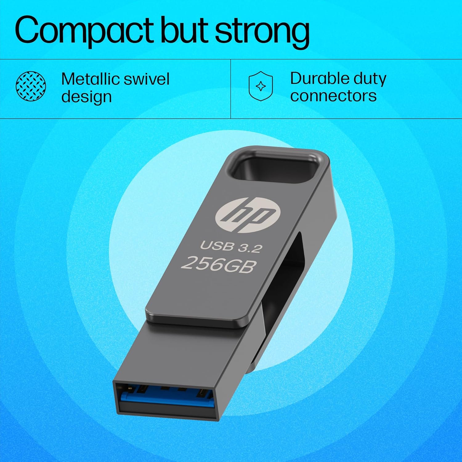 HP 886C 256GB OTG Flash Drive 3.2 Rock/Metallic Swivel Design/Durable Metal Material