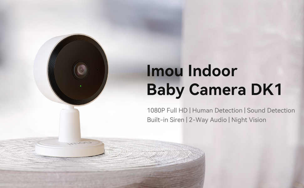 Imou Baby Monitor Indoor Security WiFi Camera DK1 | 2MP Full HD | Human Detection | Motion Detection | Sound Detection | IR Night Vision | Two Way Talk | Built-in Siren | Active Deterrence | Local Storage | Up to 256GB SD Card Support | 2-year Warranty