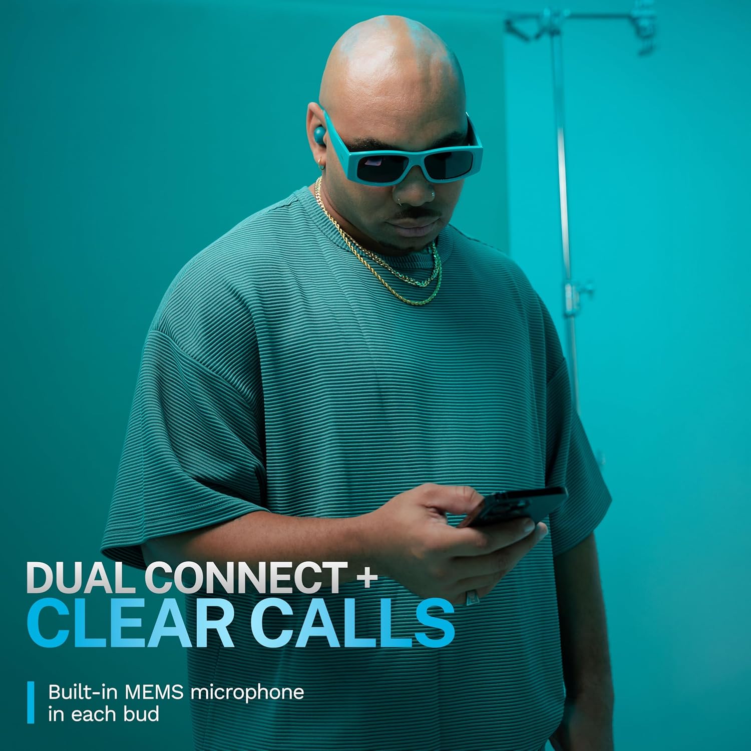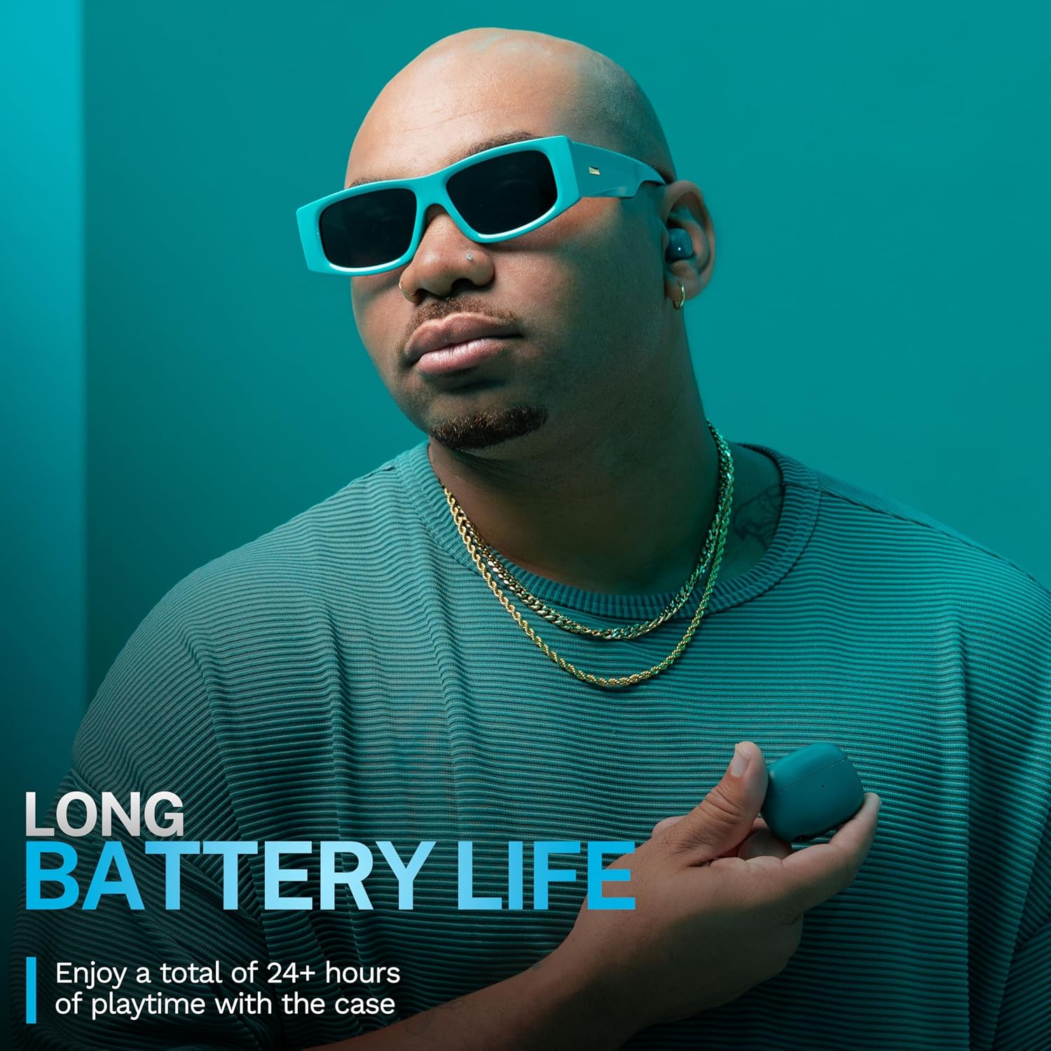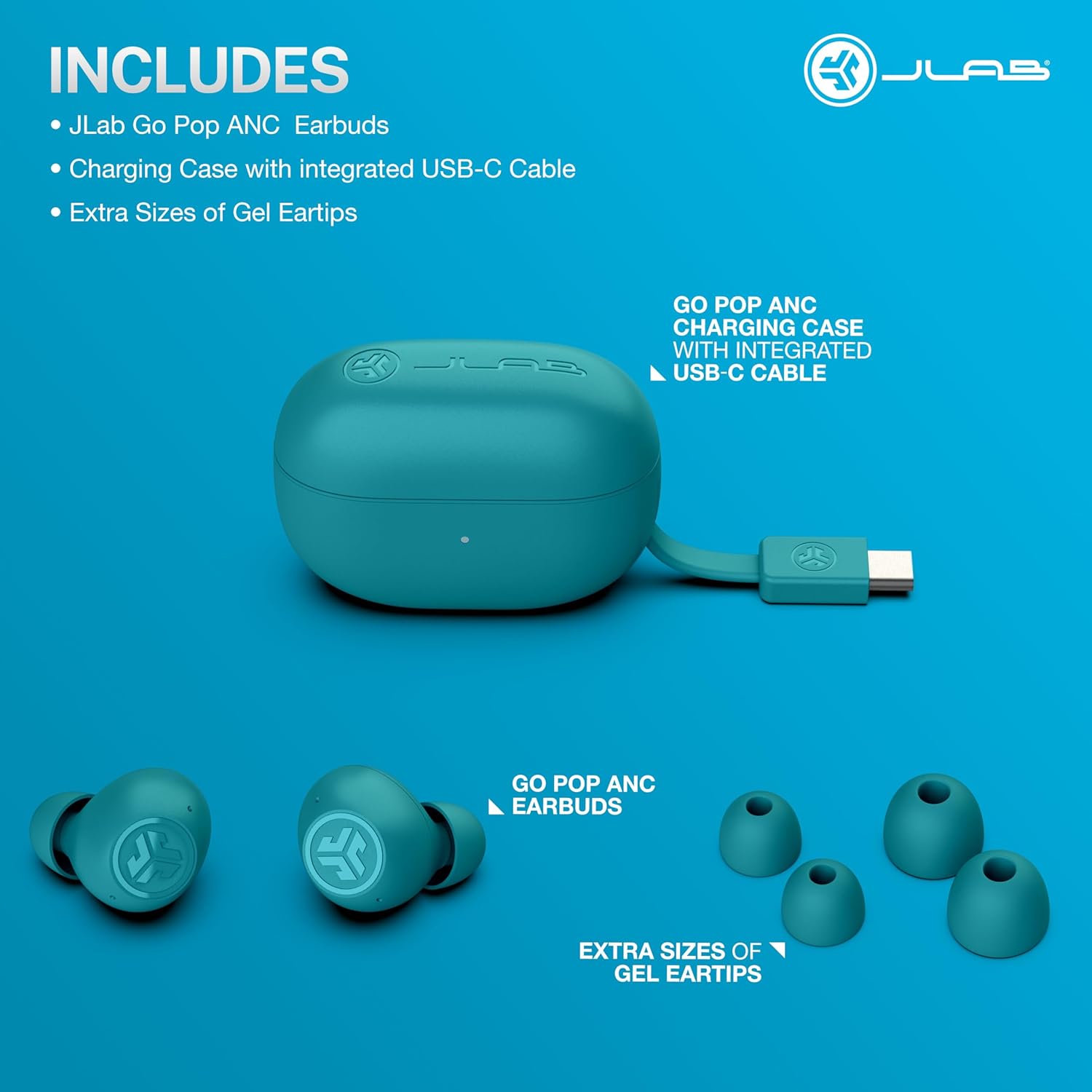 JLab Go Pop ANC Active Noise Cancelling Earbuds, Bluetooth Earphones, 24+ Hr Playtime Wireless Headphones, IP55 Sweat-Resistant in Ear Buds with Microphone, Clear Calls & Multipoint, Teal