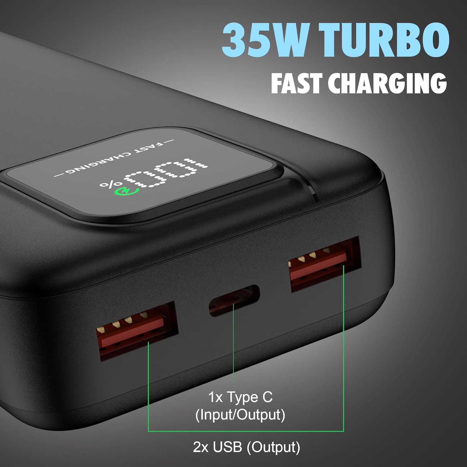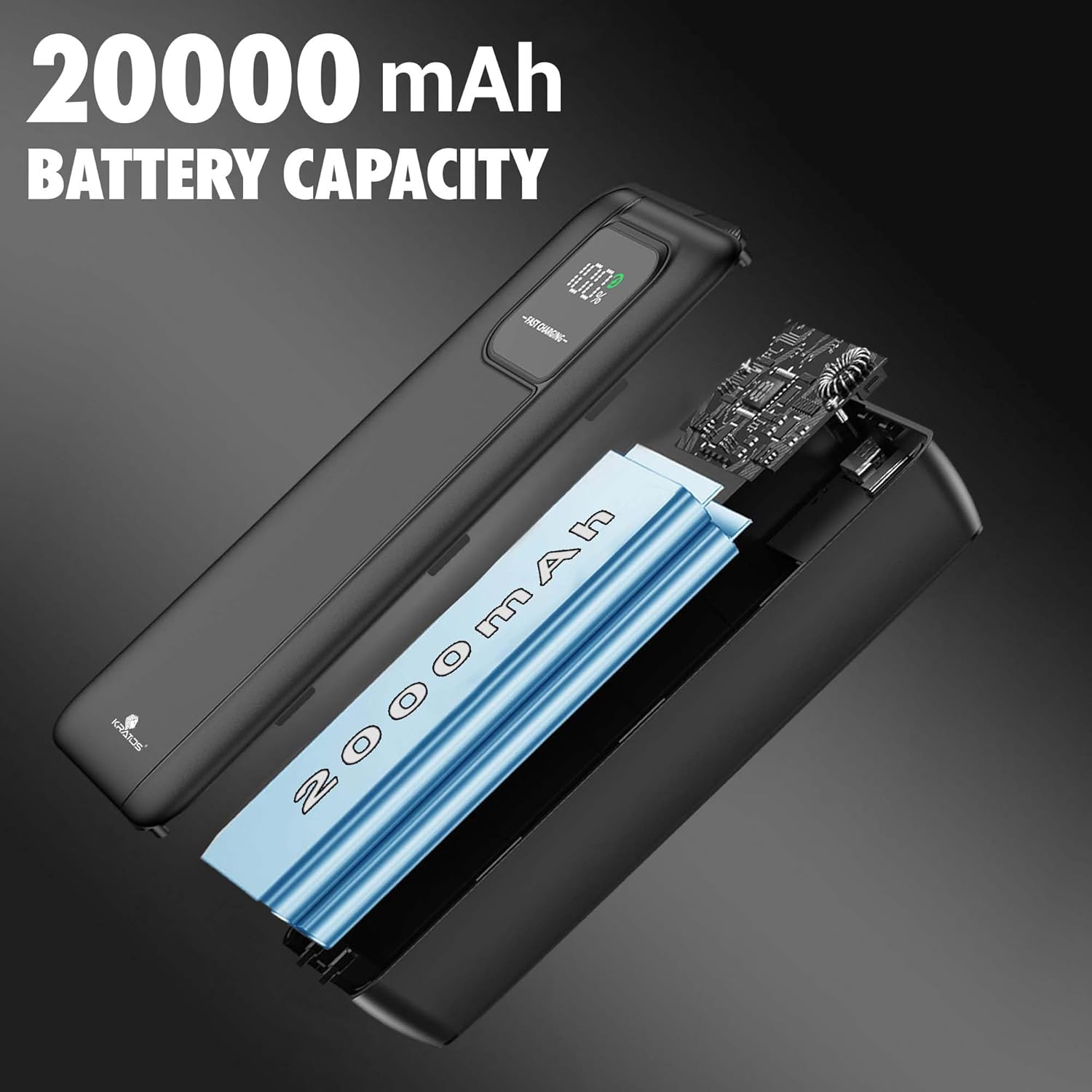 Kratos 20000mAh 35W Turbo Fast Charging Power Bank | Dual Output | PD + QC Compatible | Two-Way Fast Charging | for MacBook Air, iPhone, Samsung, Android & More (Black)