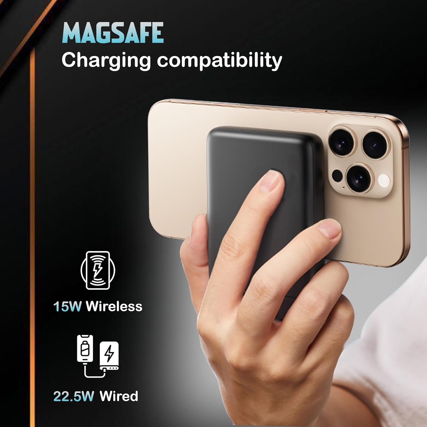 Kratos Magsafe Wireless Power Bank 10000mAh, 22.5W Fast Charging with 15W Wireless Output, Strong Magnetic Hold, USB Type-C, Compatible with iPhone 12 & Above, Android Qi Devices (Black)