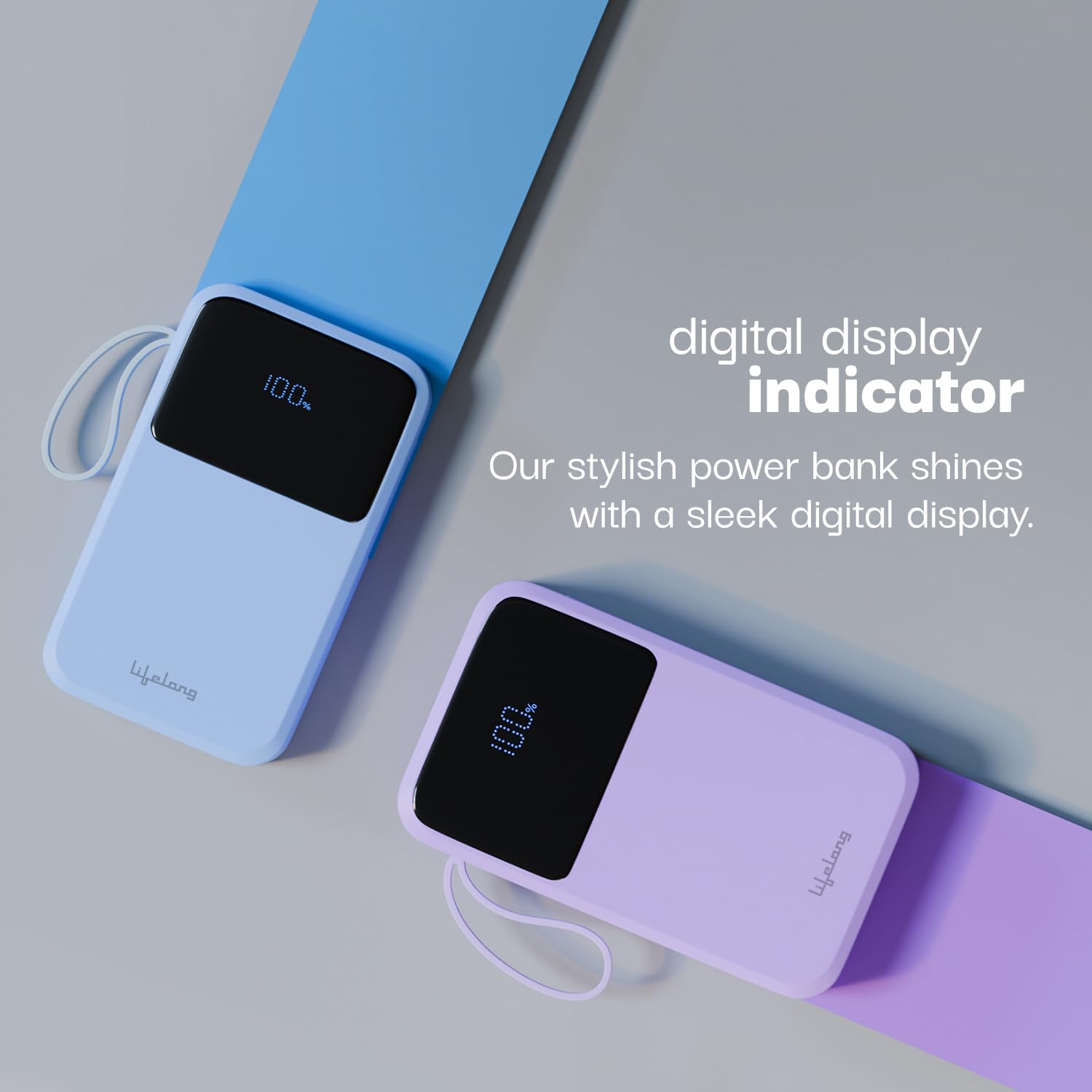 Lifelong Electronics 10000mAh 22.5W Fast Charging Power Bank | 3 Inputs (in-Built USB Cable + Lightning + Type-C Port) | 6 Outputs (3 in-Built Cables + 1 Type-C Port + 2 USB Ports) | QC 3.0 Powerbank – Blue