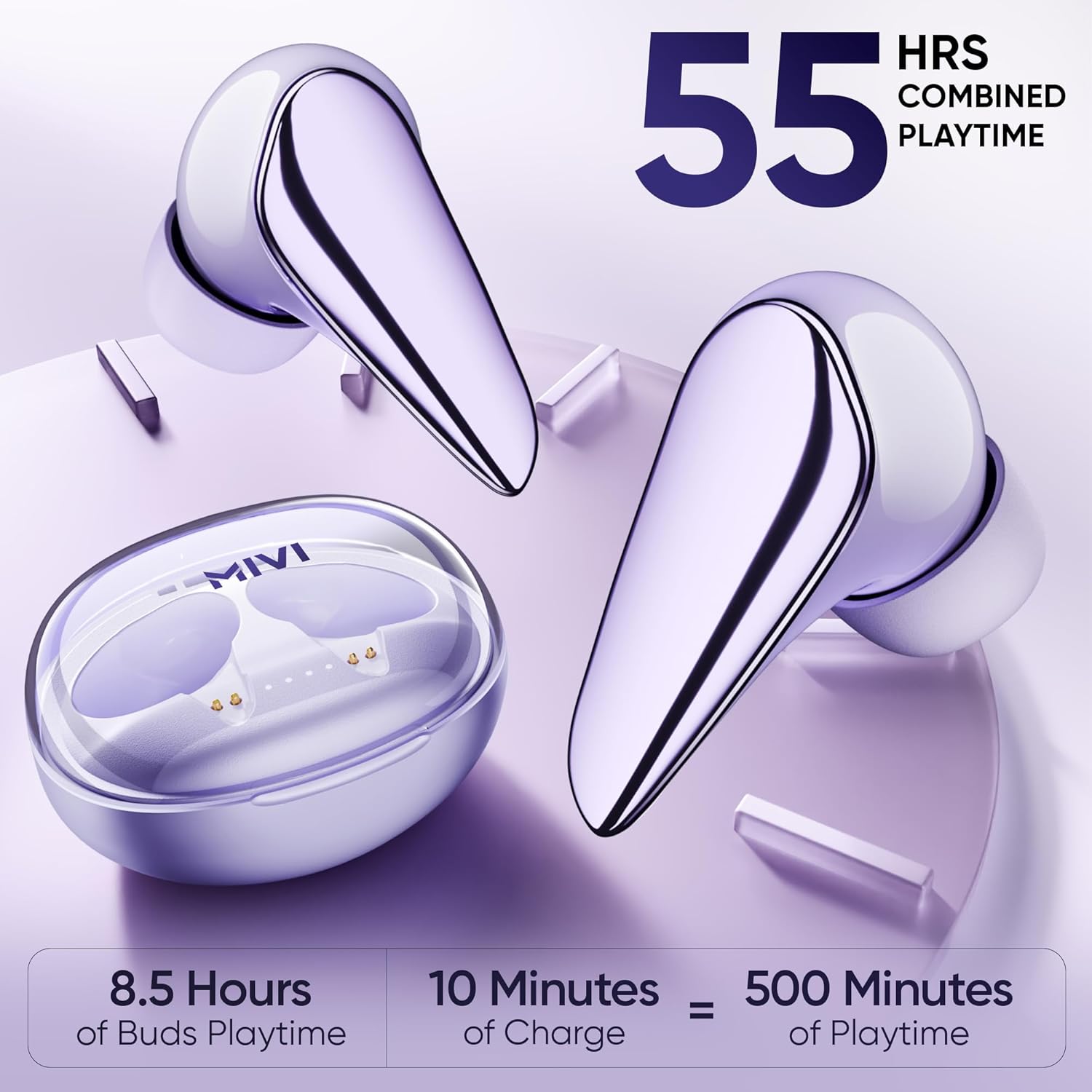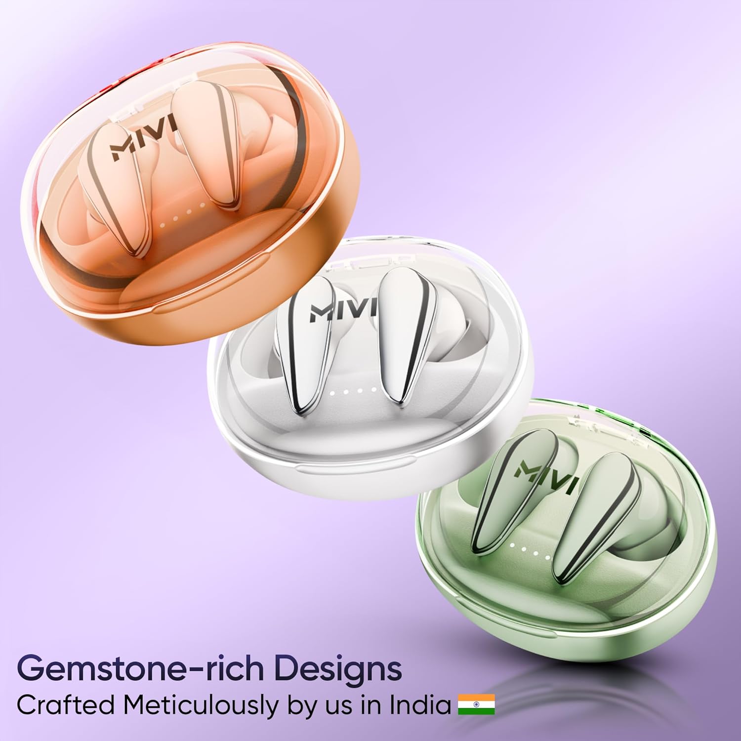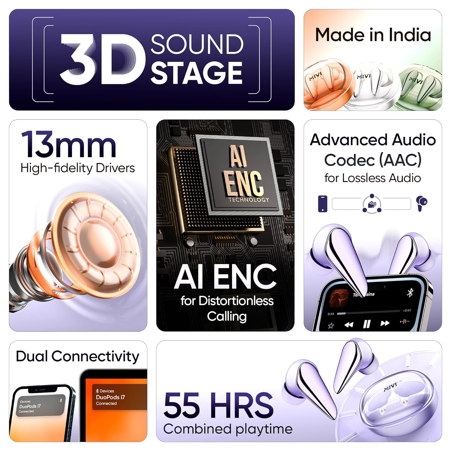 Mivi DuoPods i7 in Ear Ear Buds Wireless -The 3rd Dimension of Sound with 3D Soundstage, High Fidelity Drivers, Advanced Audio Codec for Lossless Audio Earbuds, Made in India (Lolite Lavender)