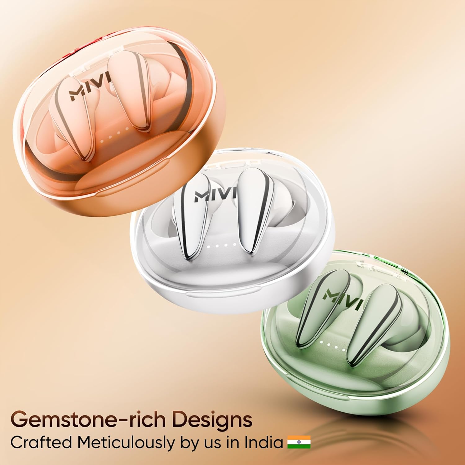 Mivi DuoPods i7 in Ear Ear Buds Wireless -The 3rd Dimension of Sound with 3D Soundstage, High Fidelity Drivers, Advanced Audio Codec for Lossless Audio Earbuds, Made in India (Peach fuzz)