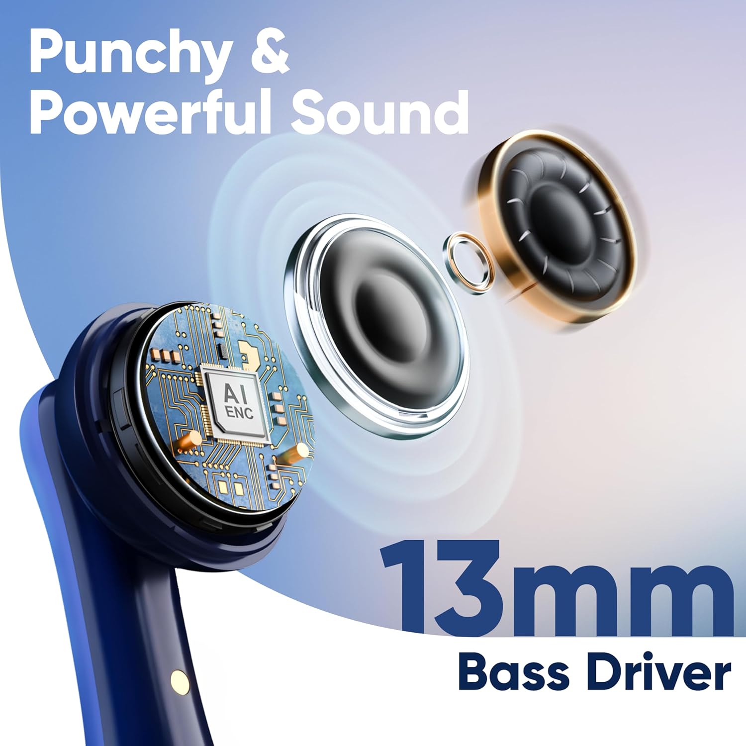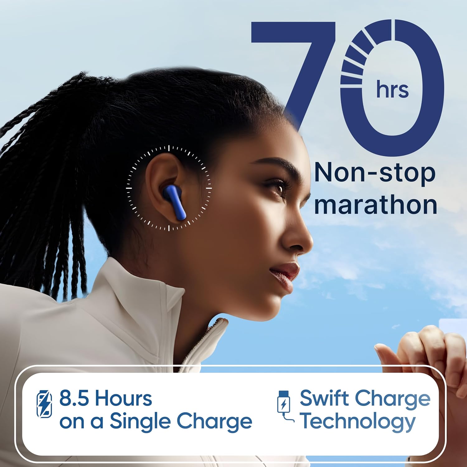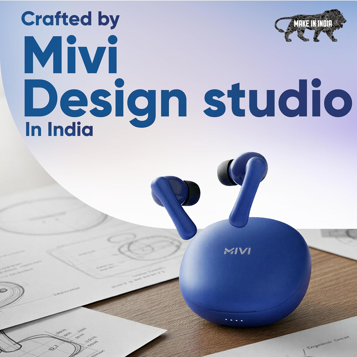 Mivi DuoPods Marathon Earbuds, 70 Hours Playtime, AI-ENC for HD Calls, 13mm Drivers, IPX 4.0, BT v5.3, Made in India True Wireless Bluetooth Ear Buds (Royal Blue)