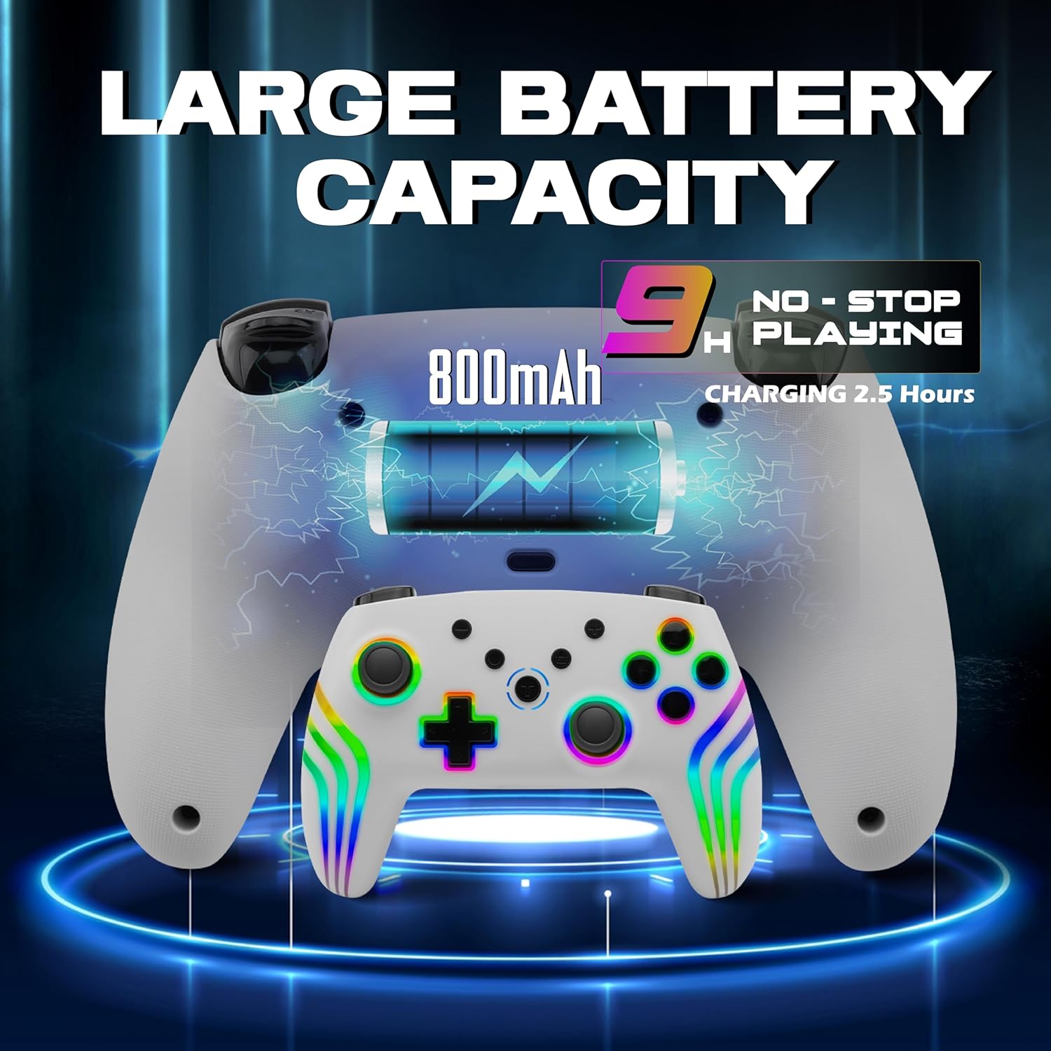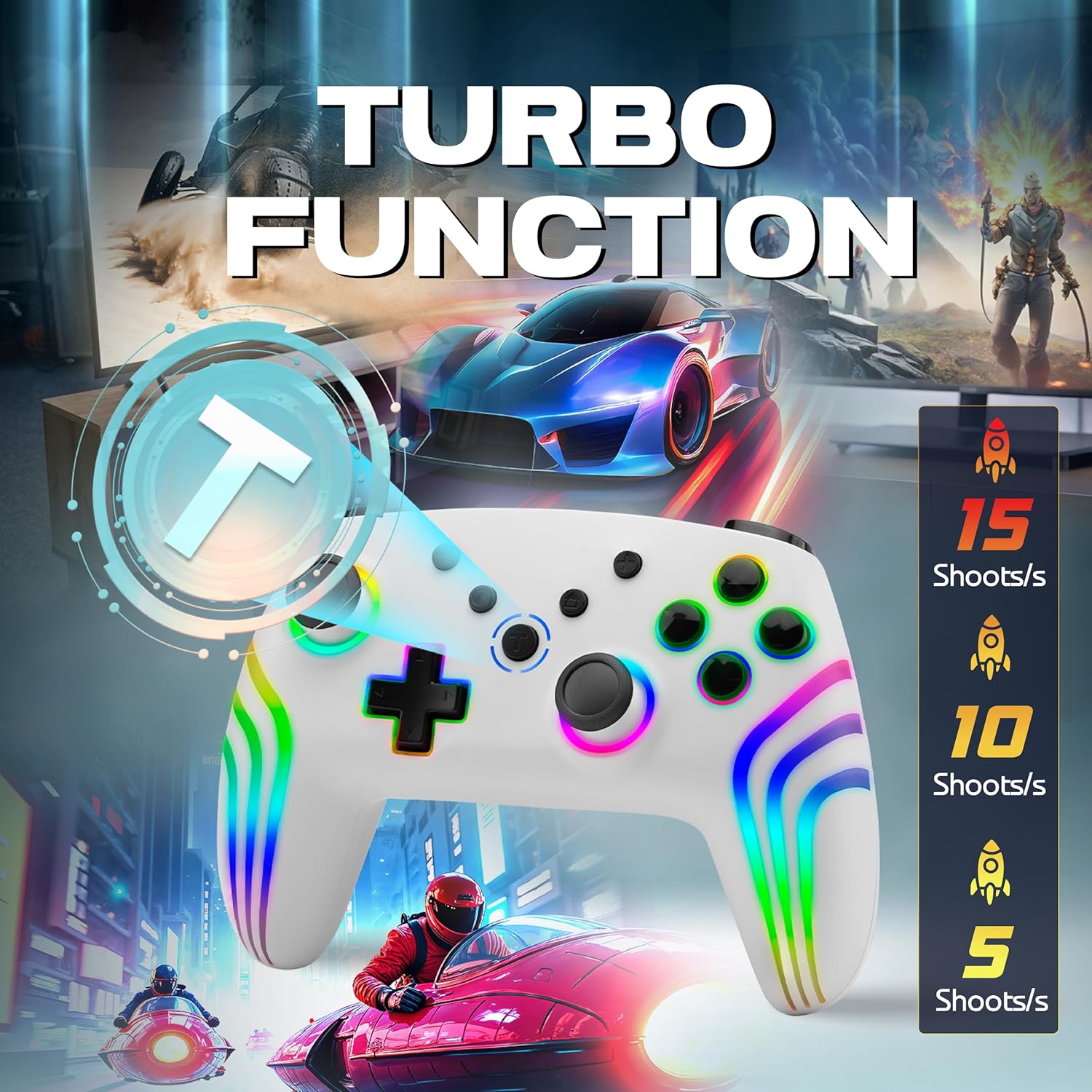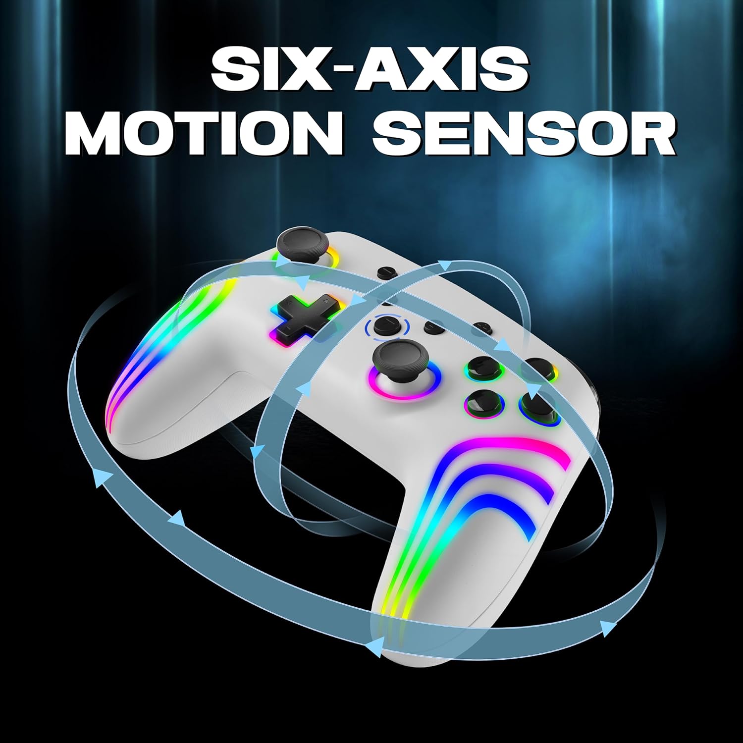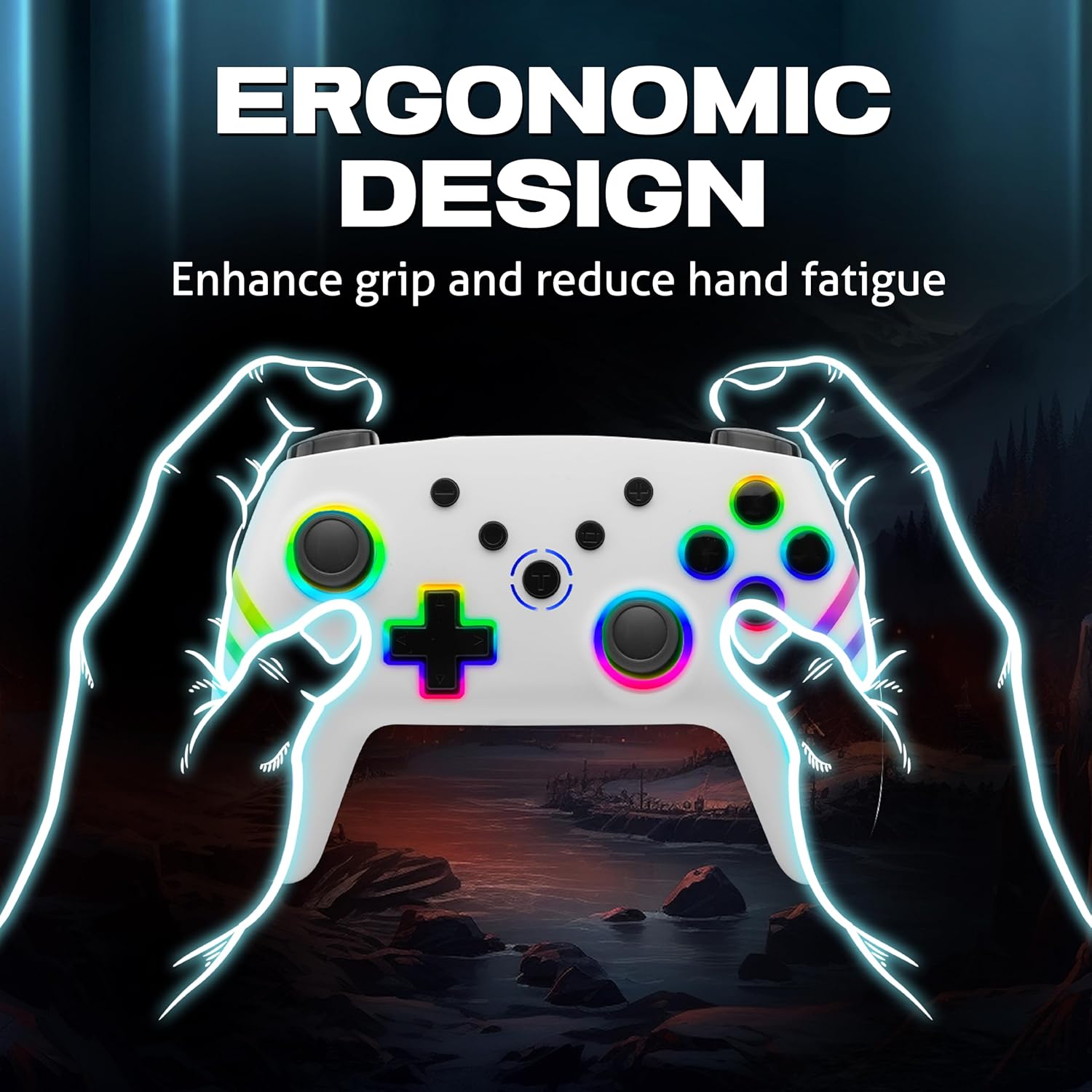 NiTHO NEXUS Wireless Controller for PC, Windows, Switch & Switch 2, iOS, Android, Gaming Gamepad with RGB Light | Hall Effect Triggers | 6-Axis Gyro | Vibration & Turbo | Programmable Buttons, White