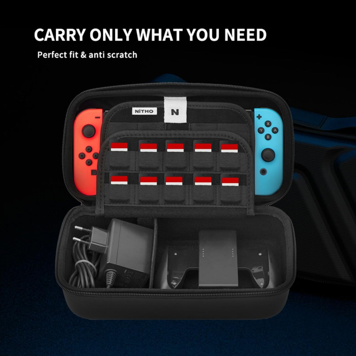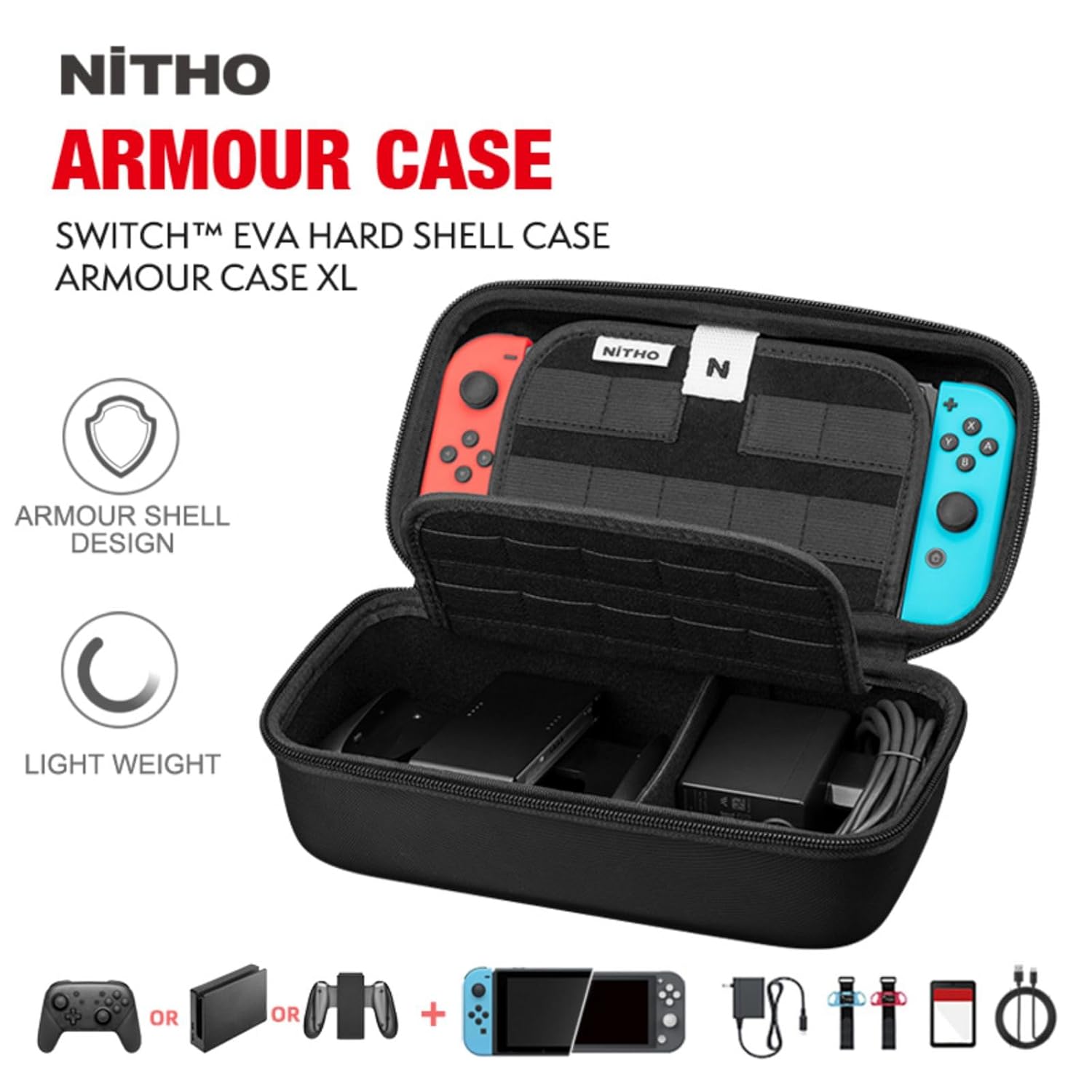 NiTHO SWITCH/SWITCH LITE ARMOUR CASE XL, Carry Case Compatible with Nintendo Switch/Lite Console & Accessories Black Protective Hard Portable Travel Case Shell Pouch