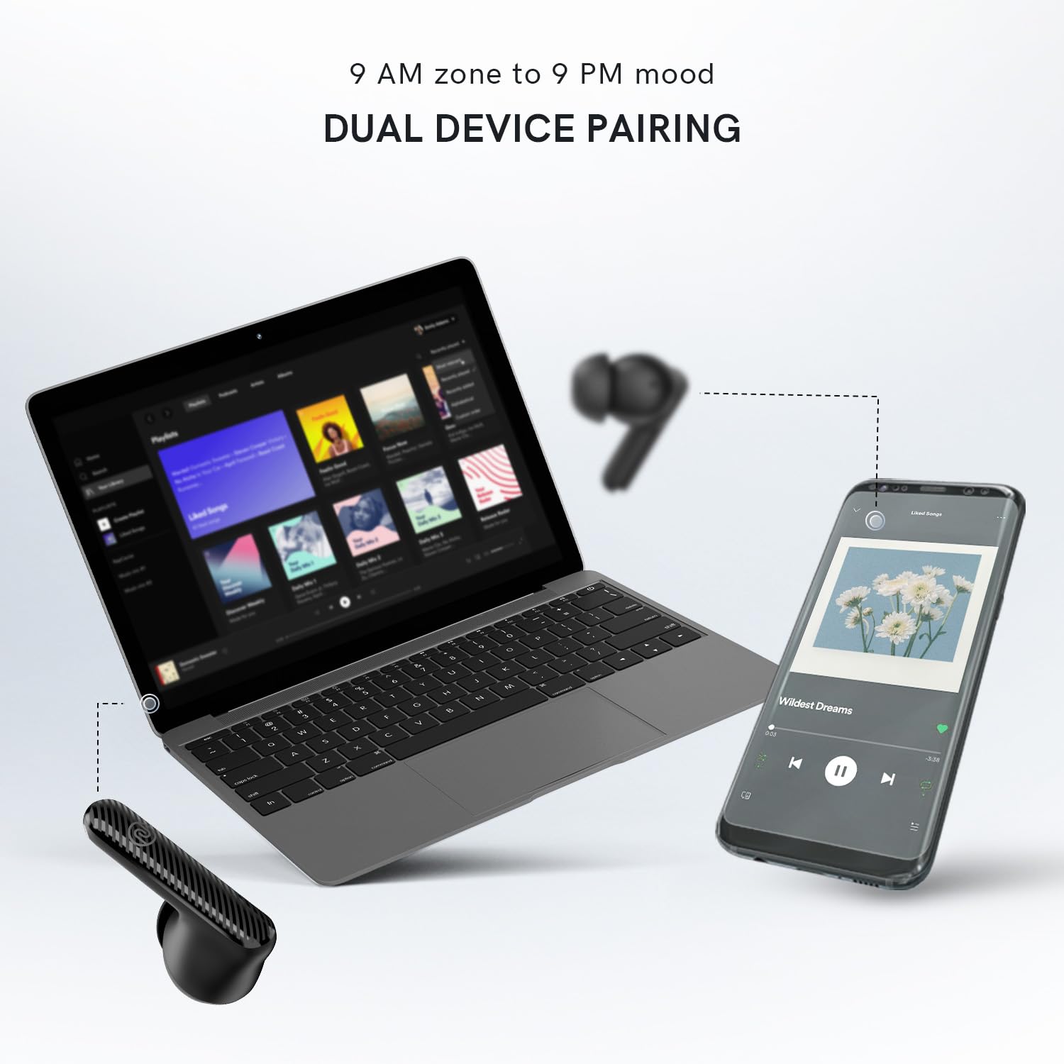 Noise Aura Buds in Ear Truly Wireless Earbuds with 60H of Playtime, Quad Mic with ENC, Dual Device Pairing, Instacharge(10 Min=150 Min),12Mm Polymer Composite Driver,BT V5.3(Aura Black)