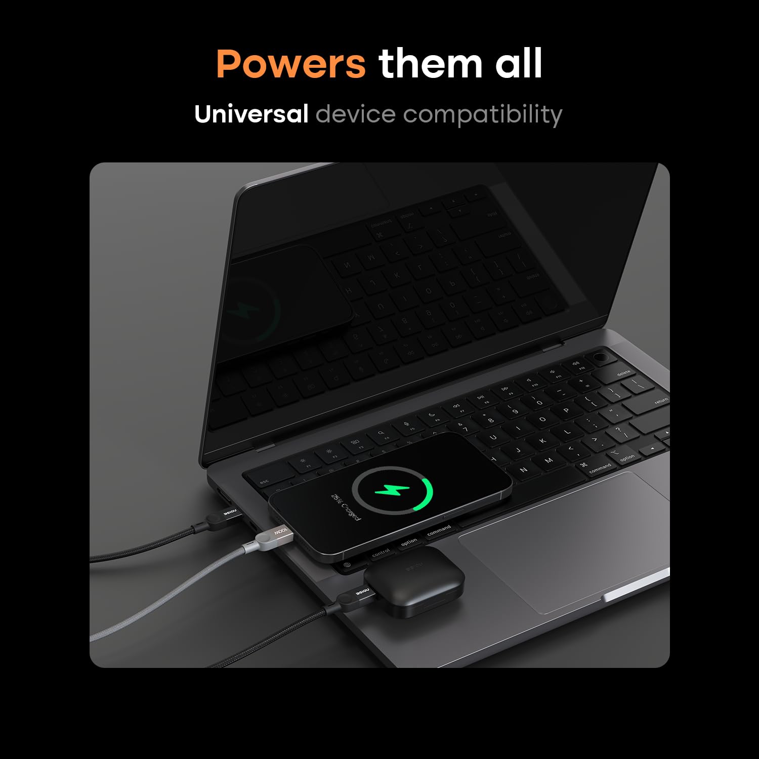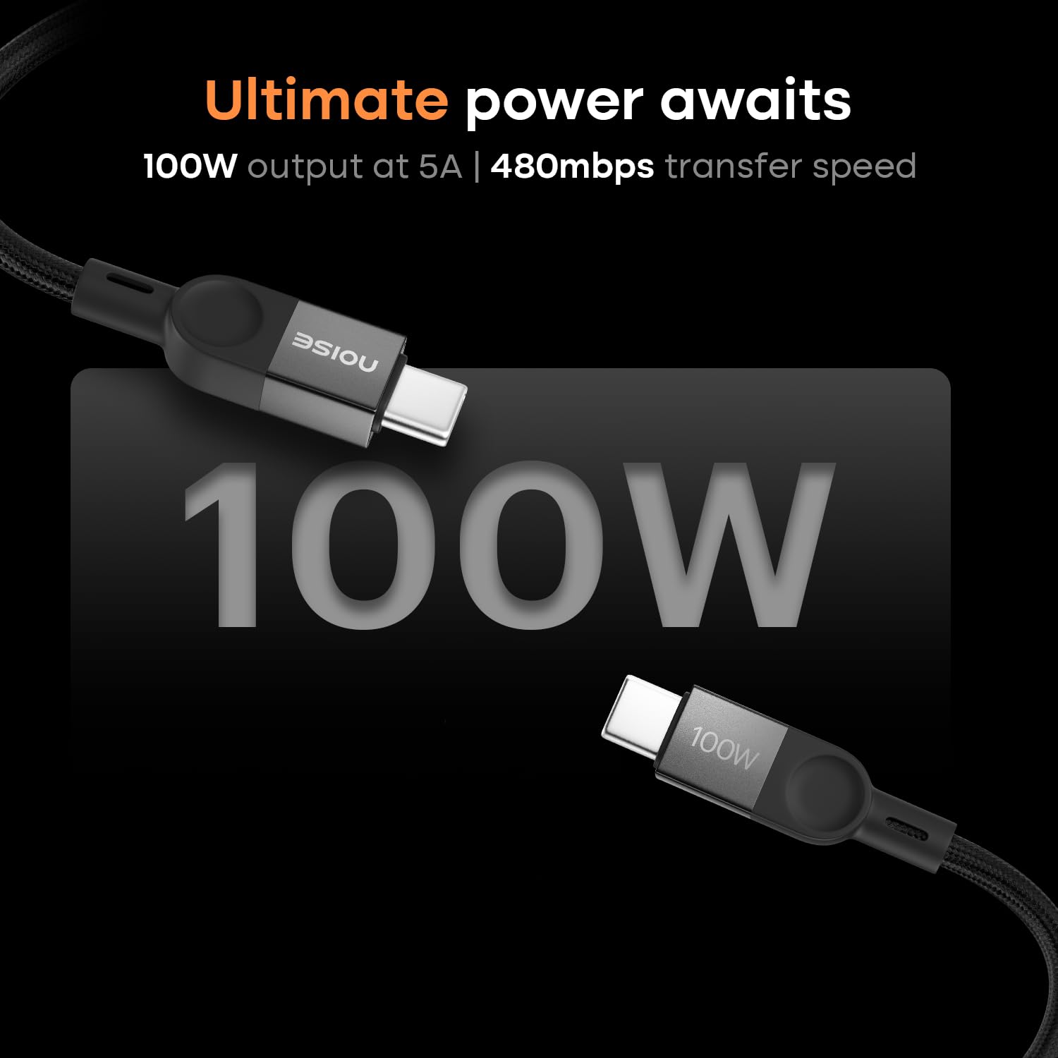 Noise Power Series 100W Super Fast Charging USB C to USB C Cable | 50x More Durable| 1M/ 3.3Ft | 5A PD charge | 480 Mbps Transfer Speed| Braided cable for iPhones, Android, MacBooks, Tablets (Black)