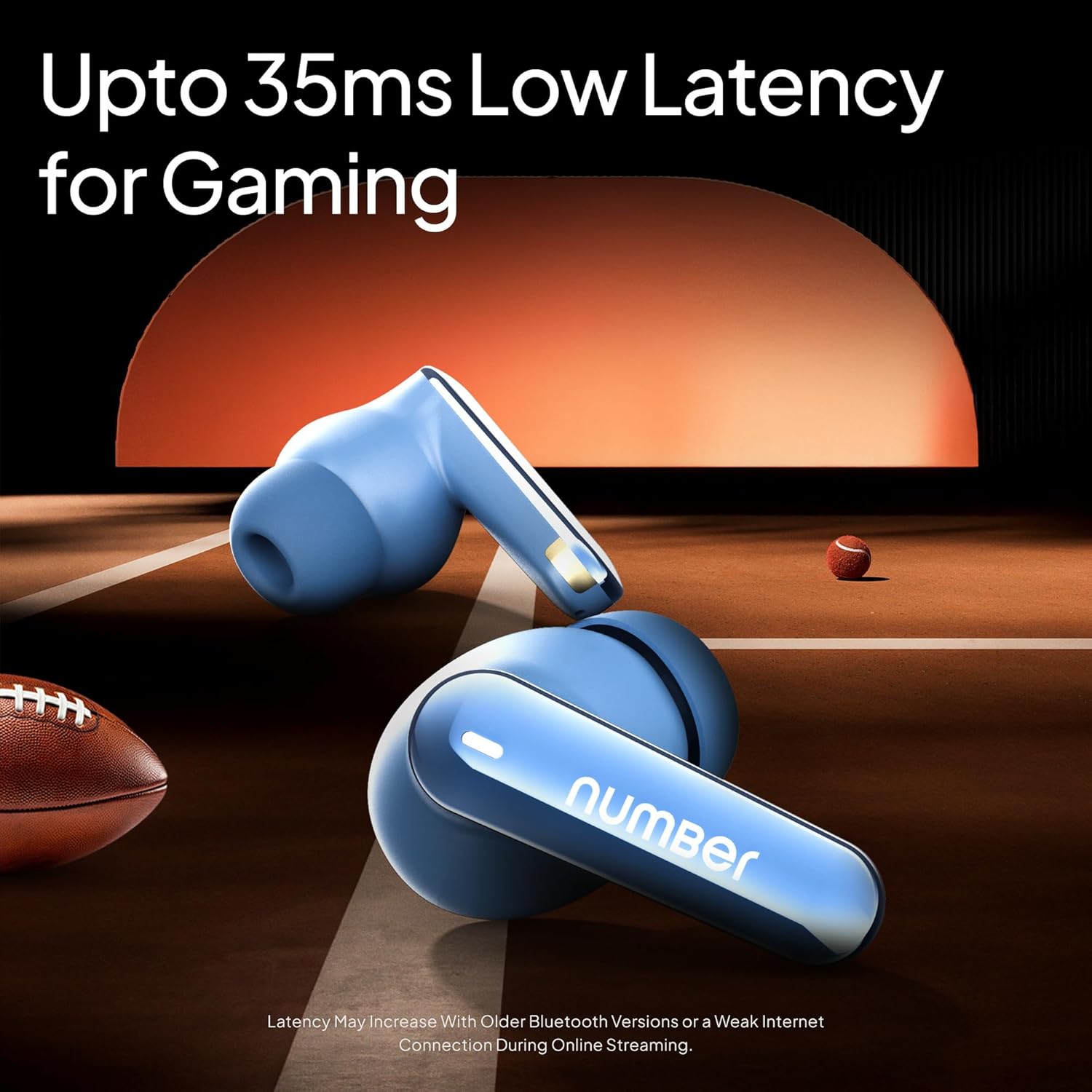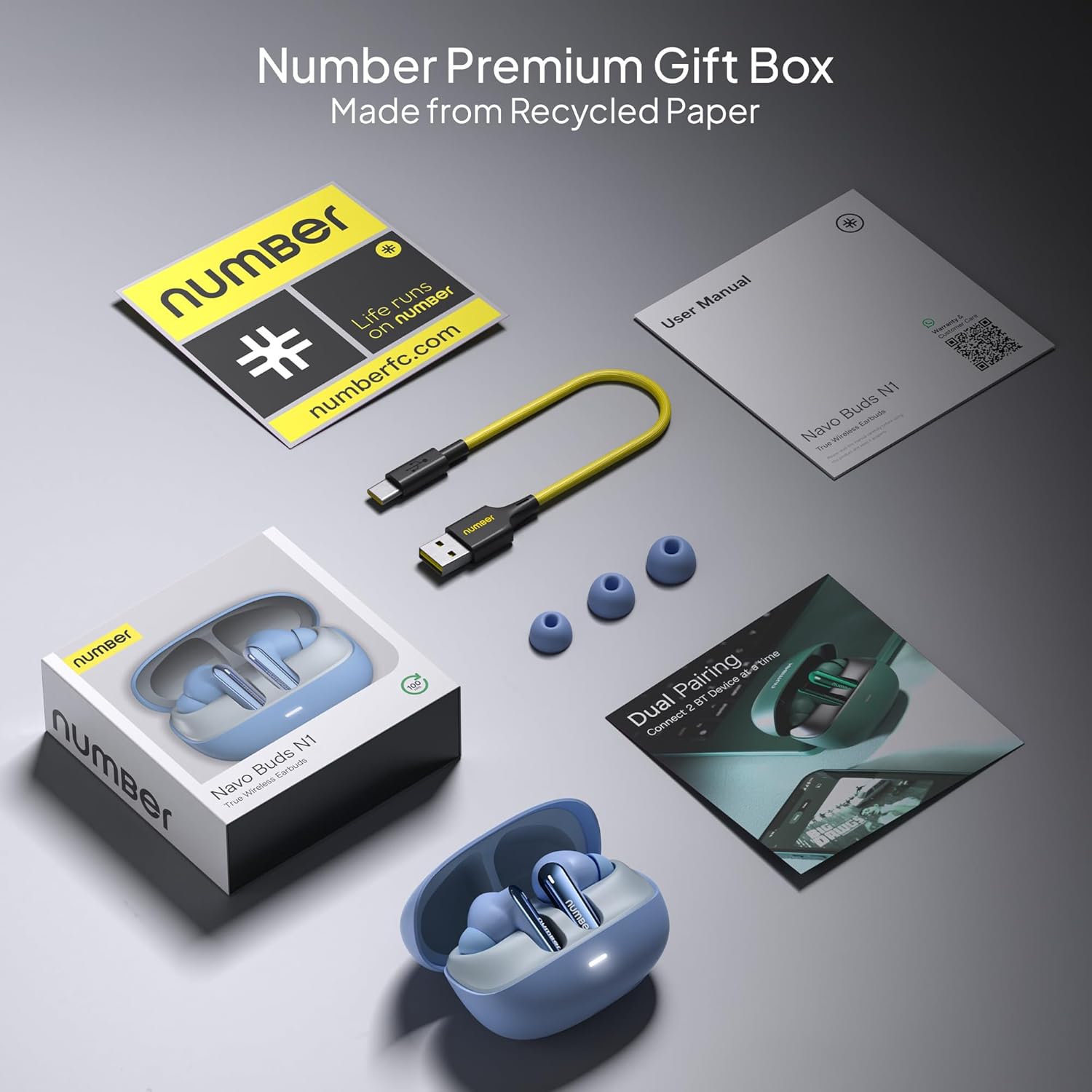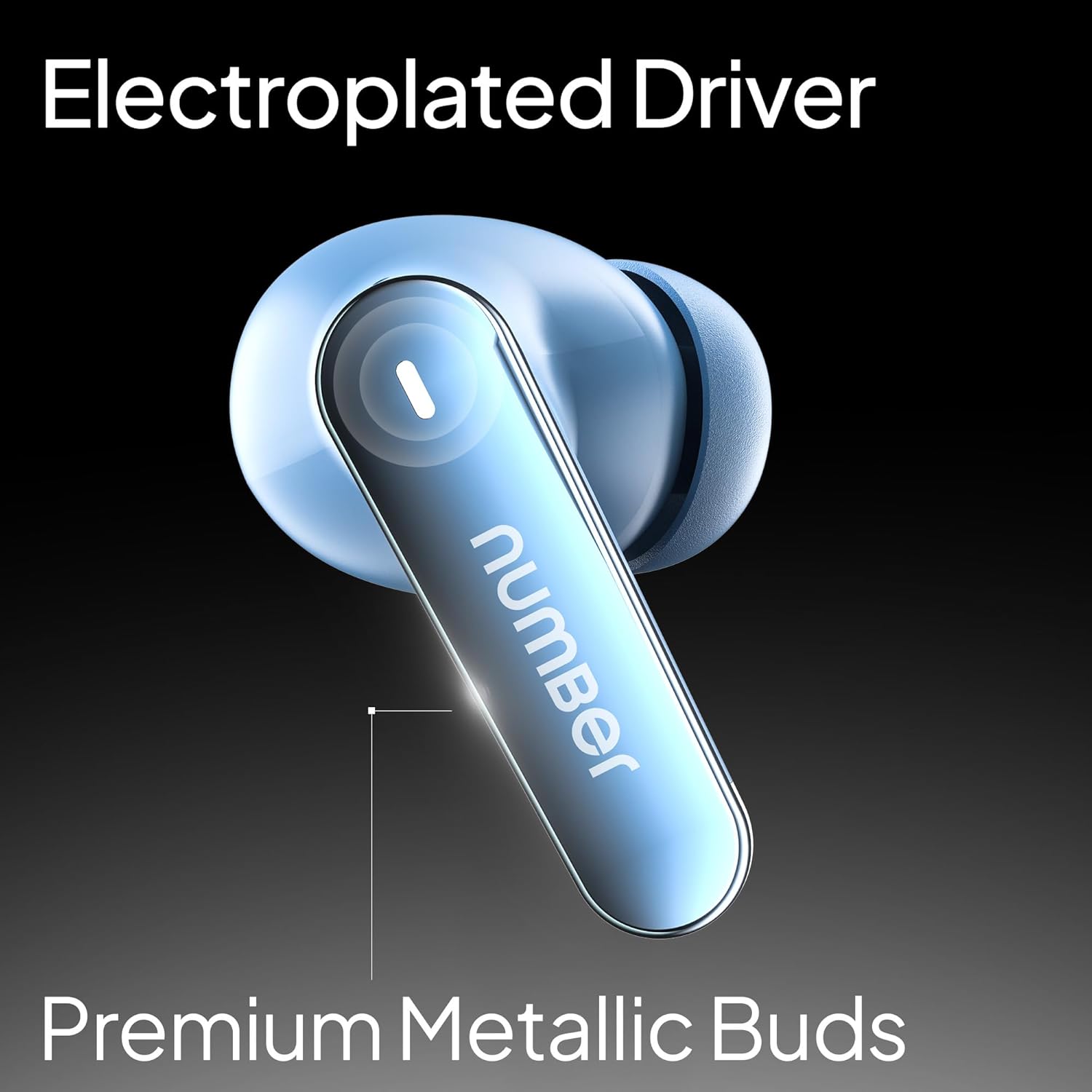 Number Navo Bluetooth Buds N1 w/ 100Hrs Playtime, 4Mic ENC, Dual Pairing, High Bass,True Wireless Earbuds Fast Charge(Zenzy Blue)