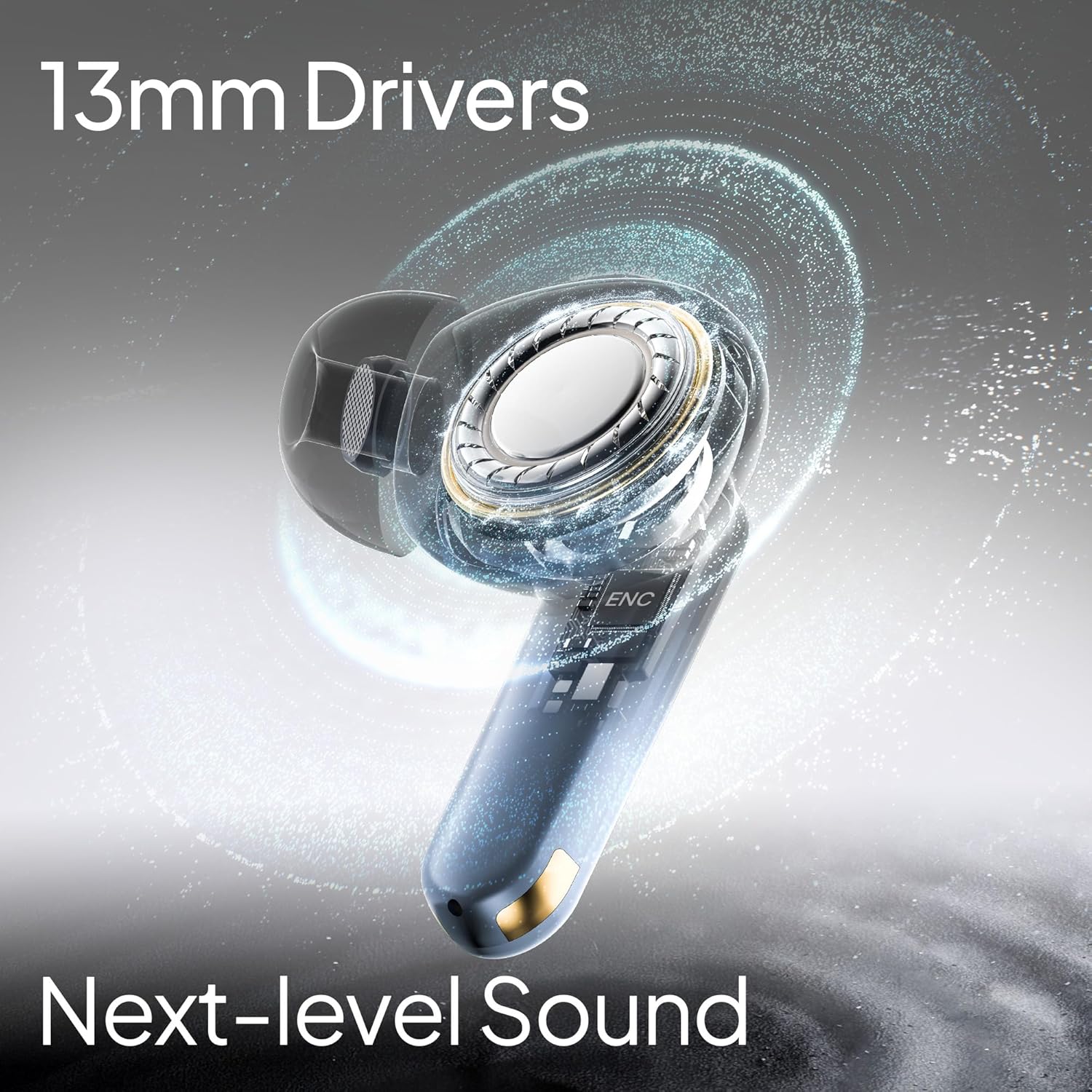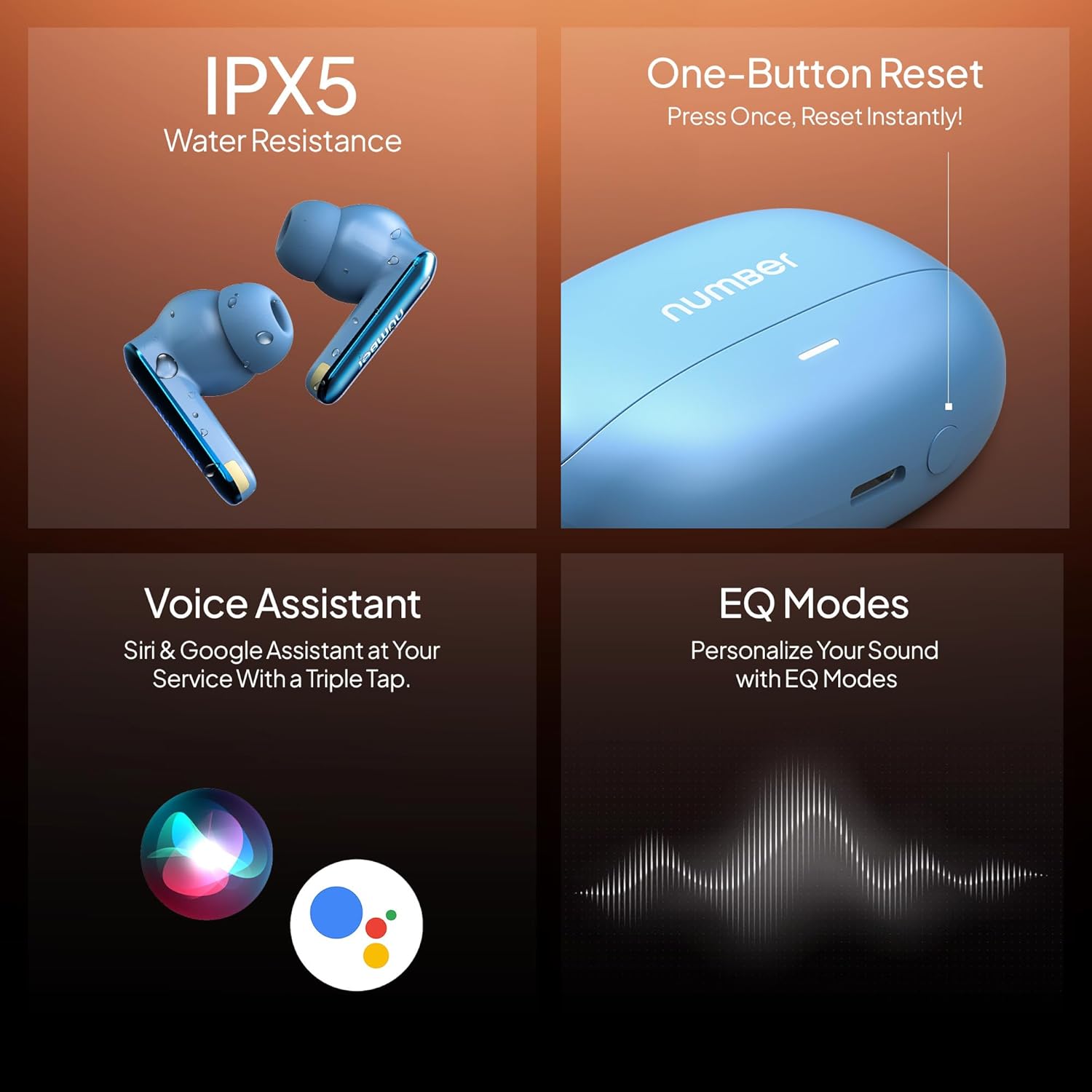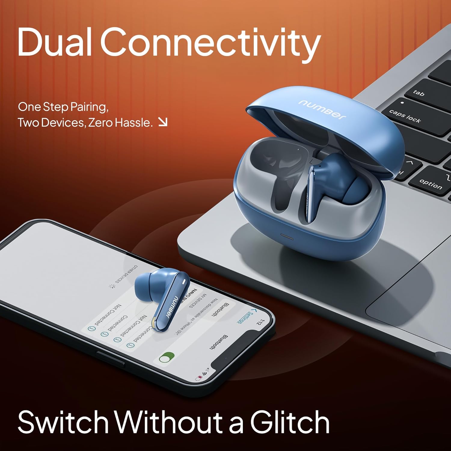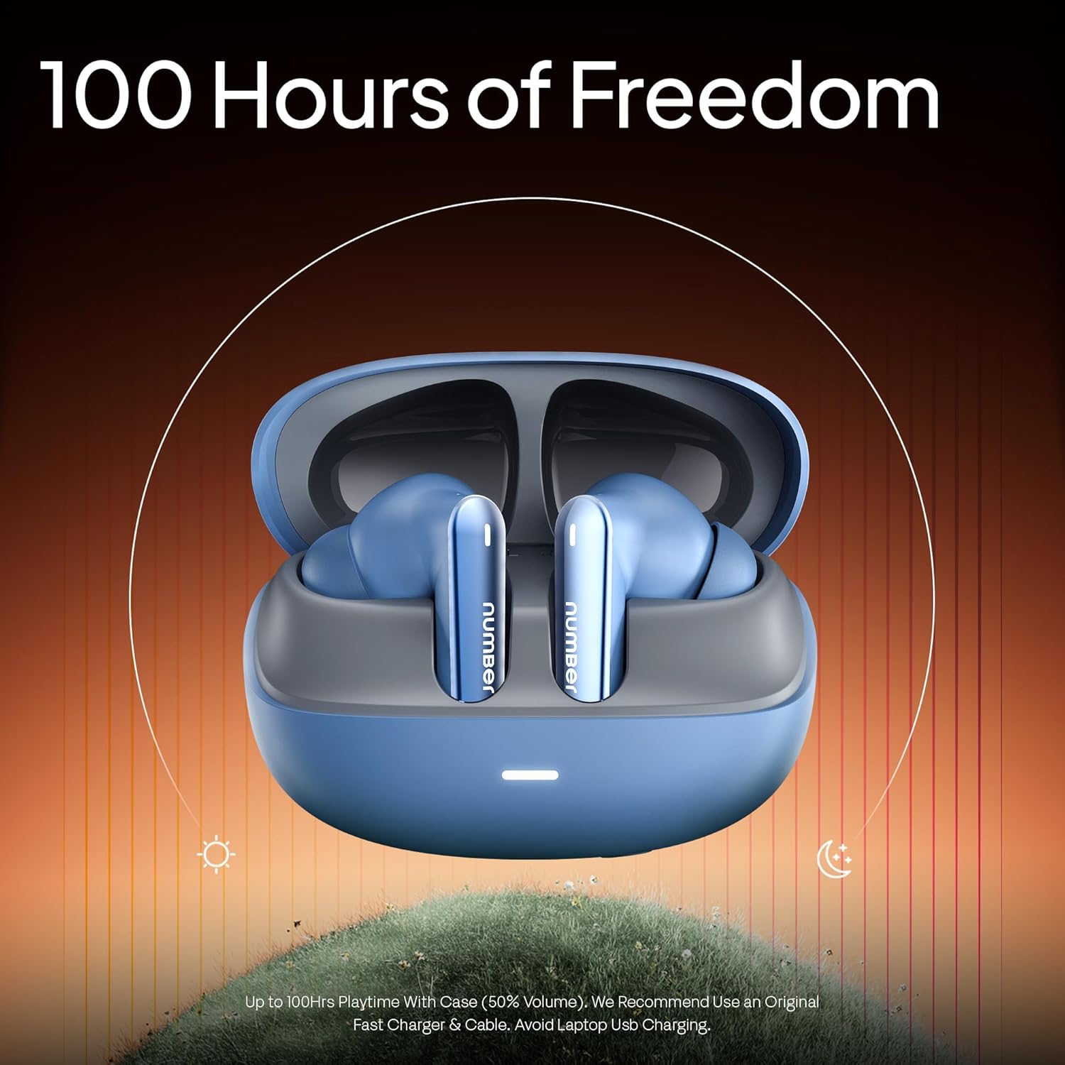 Number Navo Bluetooth Buds N1 w/ 100Hrs Playtime, 4Mic ENC, Dual Pairing, High Bass,True Wireless Earbuds Fast Charge(Zenzy Blue)