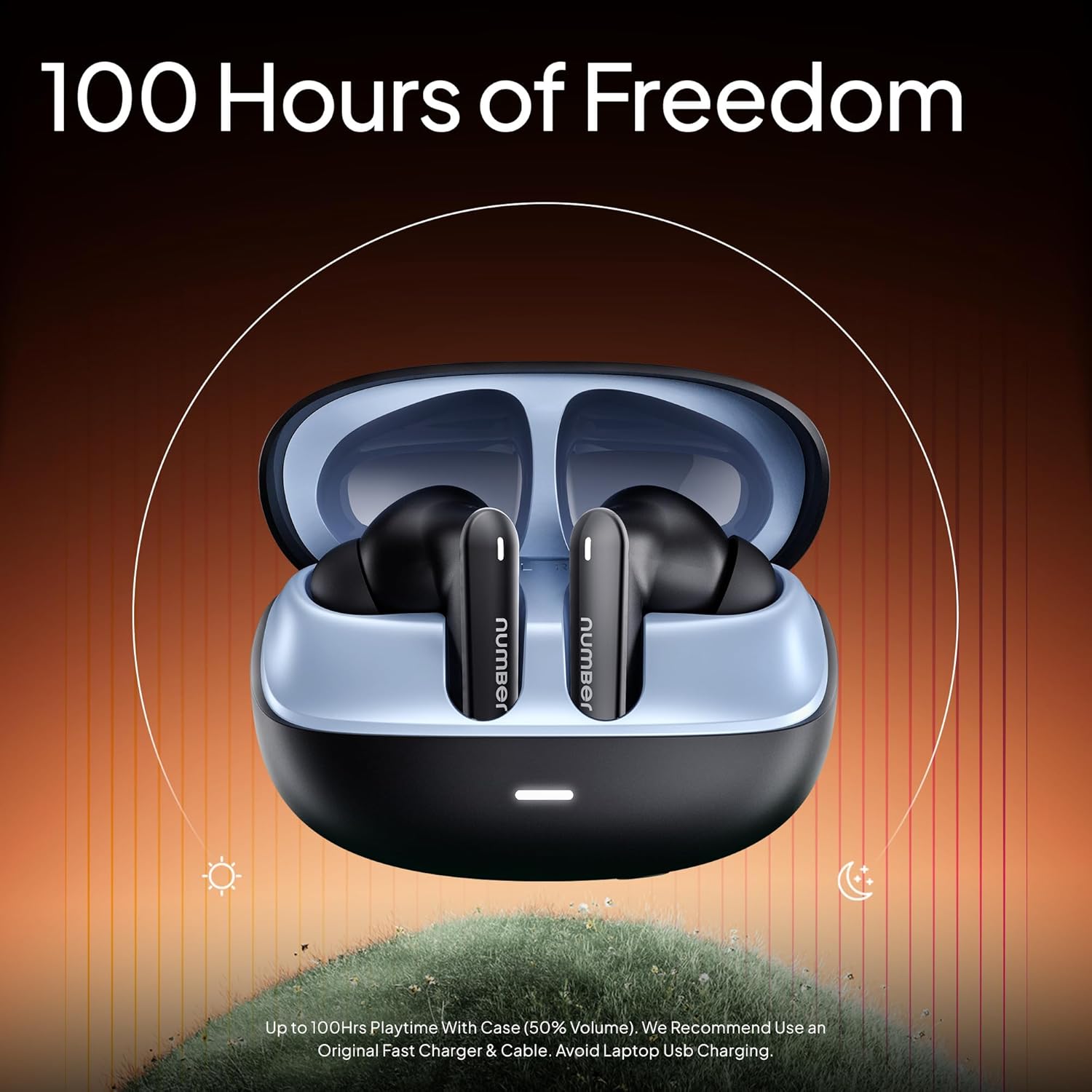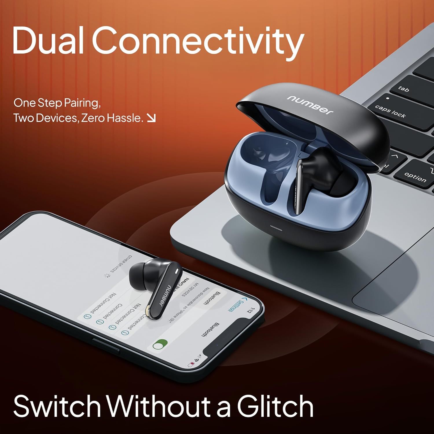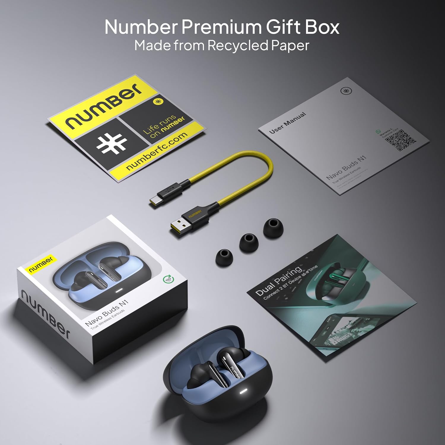 Number Navo Buds N1 w/ 100Hrs Playtime, 4Mic ENC, Dual Pairing, High Bass, Fast Charge True Wireless Earbuds (Bold Black)