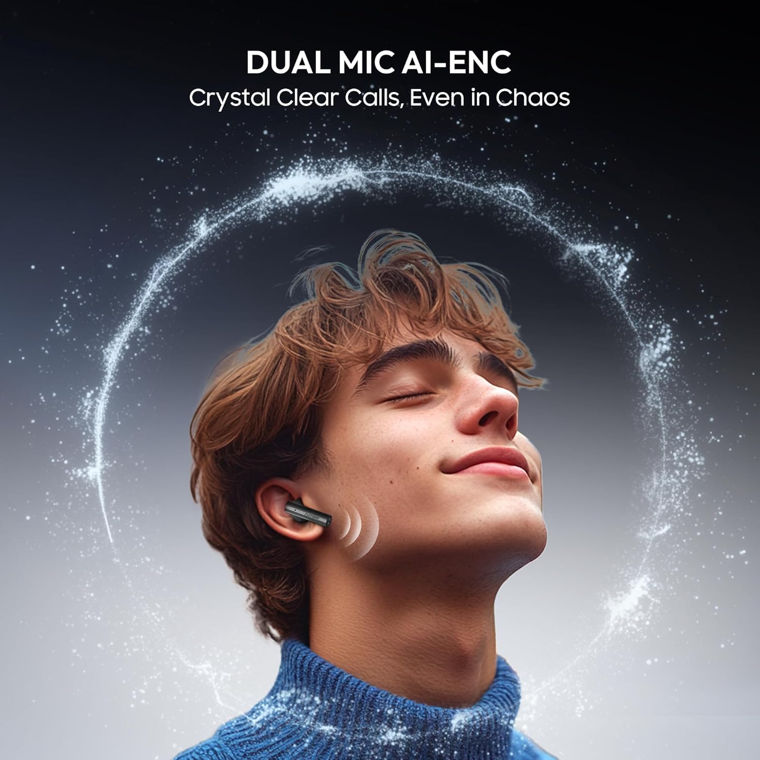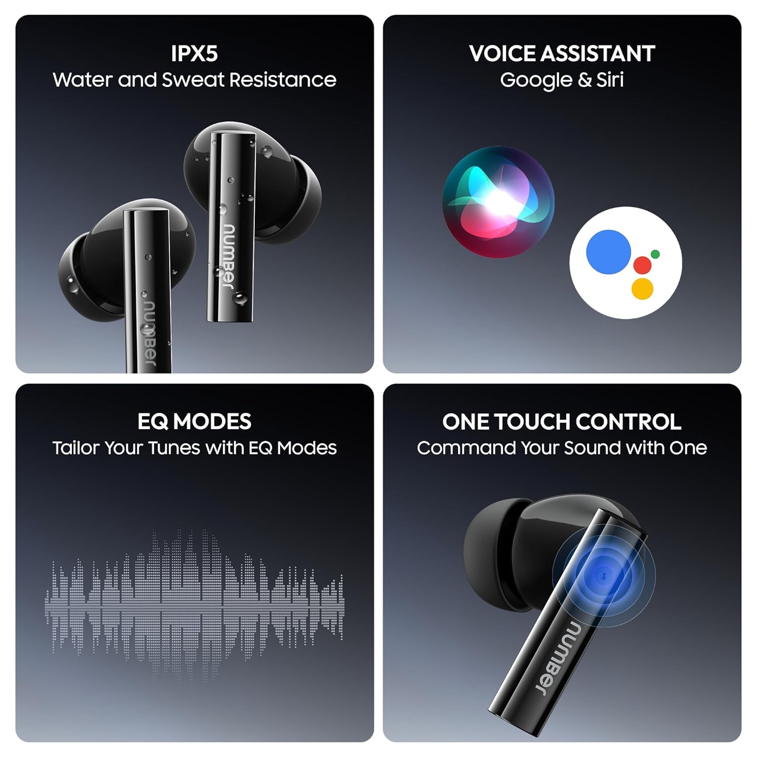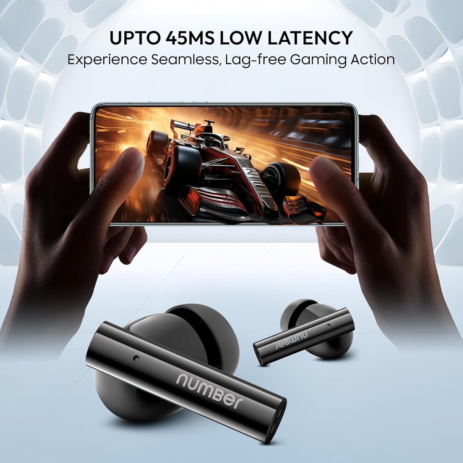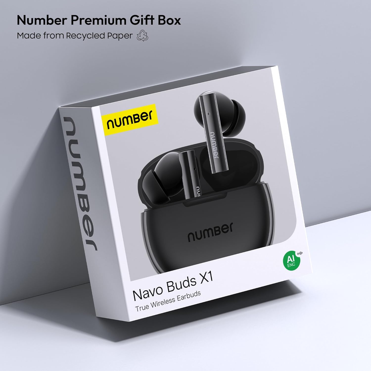 Number Navo Buds X1 w/ 50H Playtime, Dual Pairing, 13mm Speakers, ENC, 45ms Low Latency Bluetooth (Black Moon)