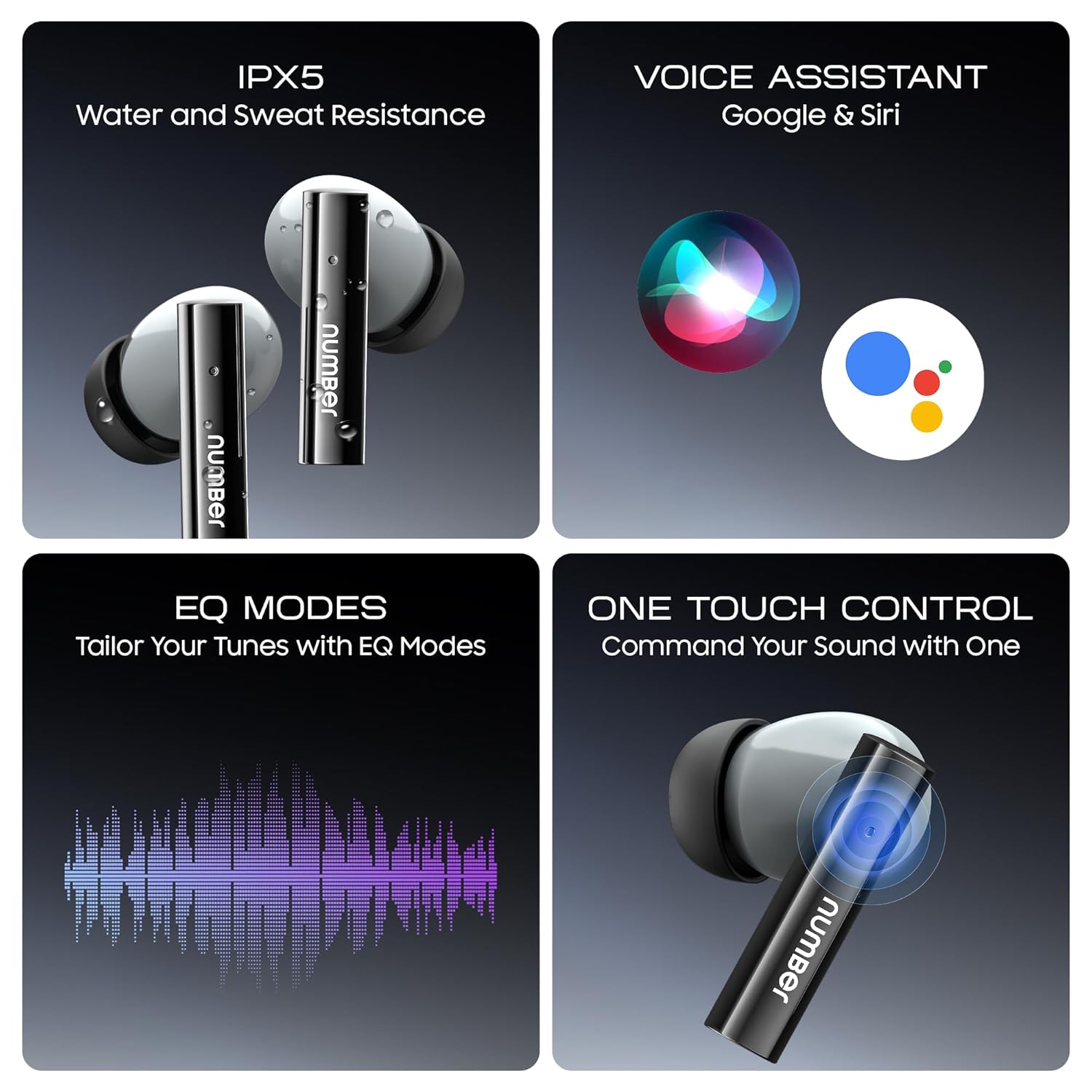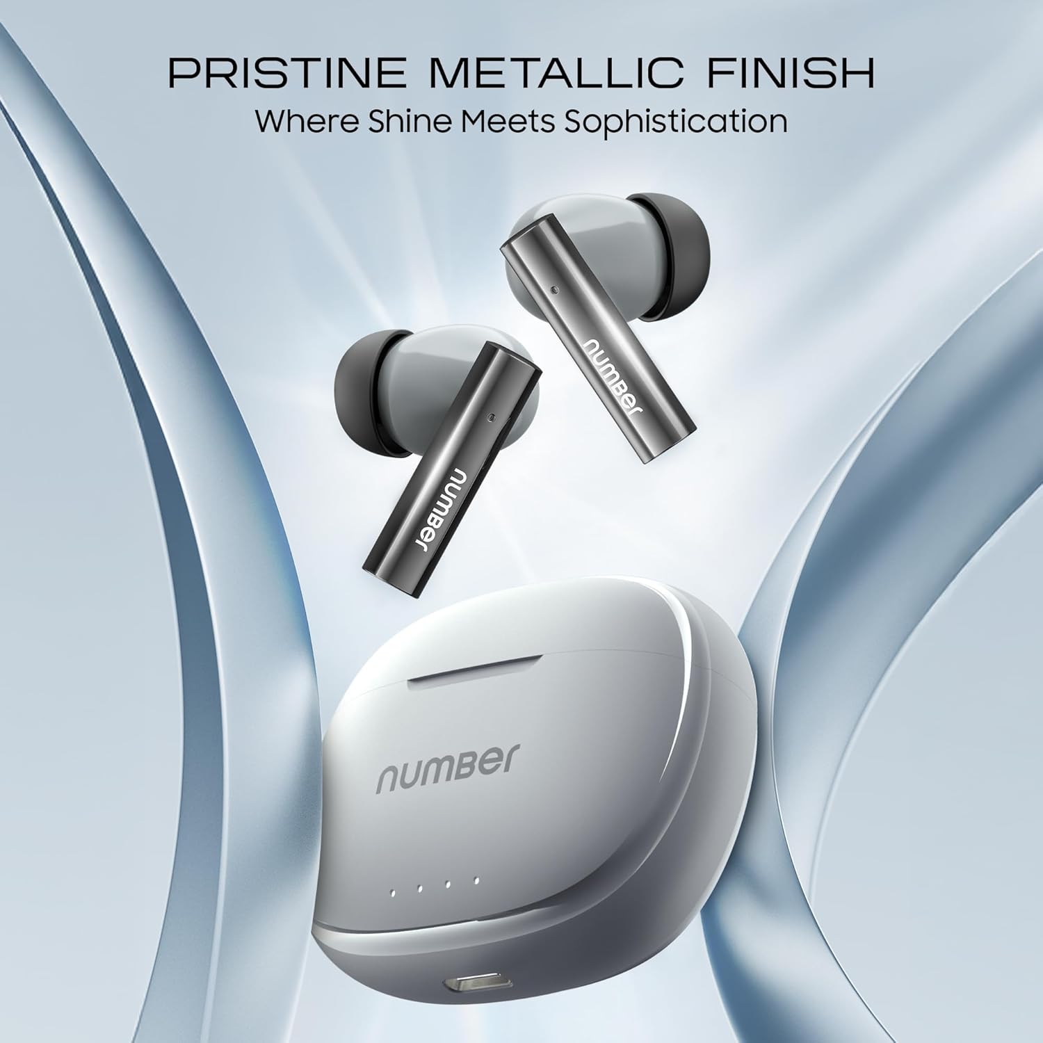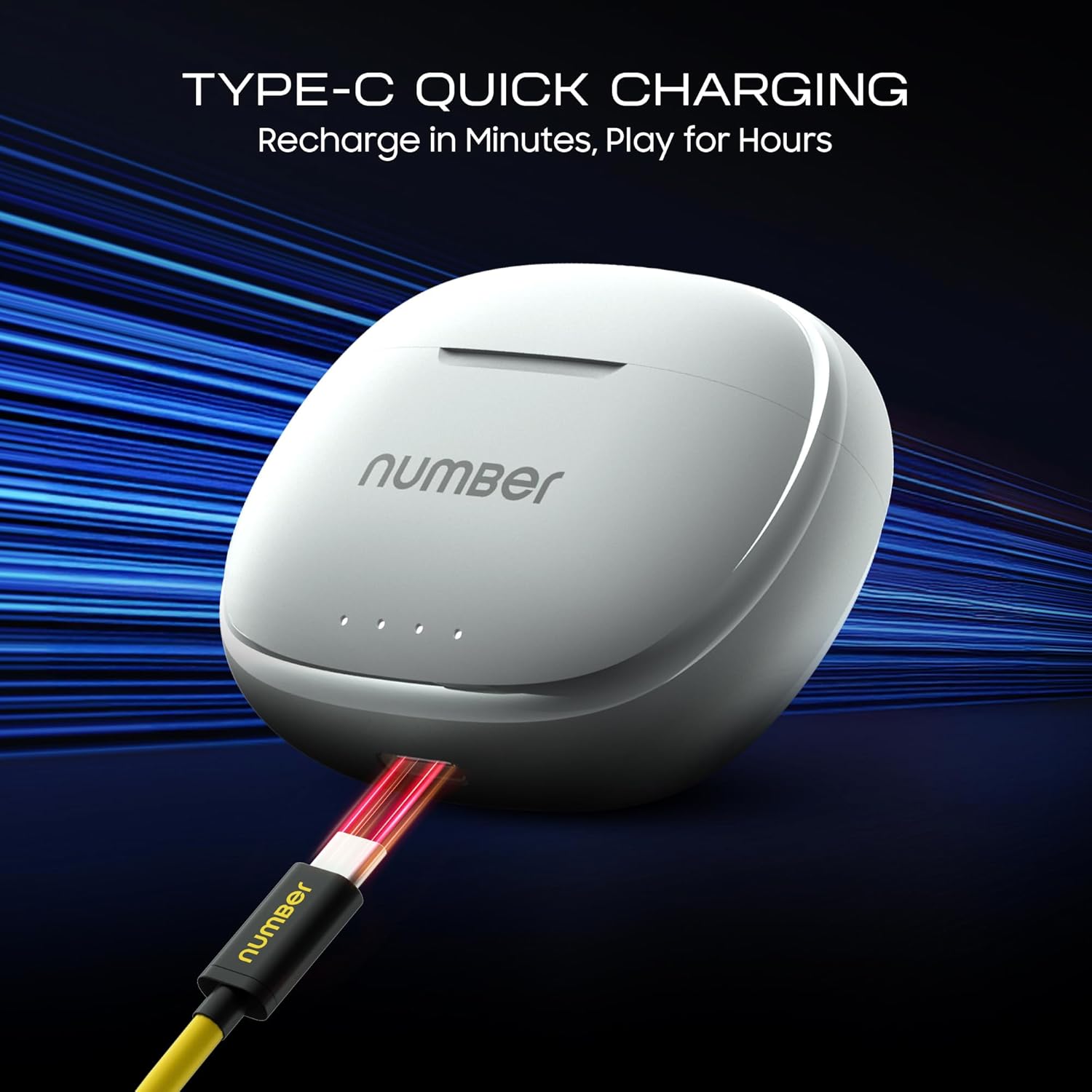 Number Navo Buds X1 w/ 50H Playtime, Dual Pairing, 13mm Speakers, ENC, 45ms Low Latency True Wireless Bluetooth (Grey Stone)