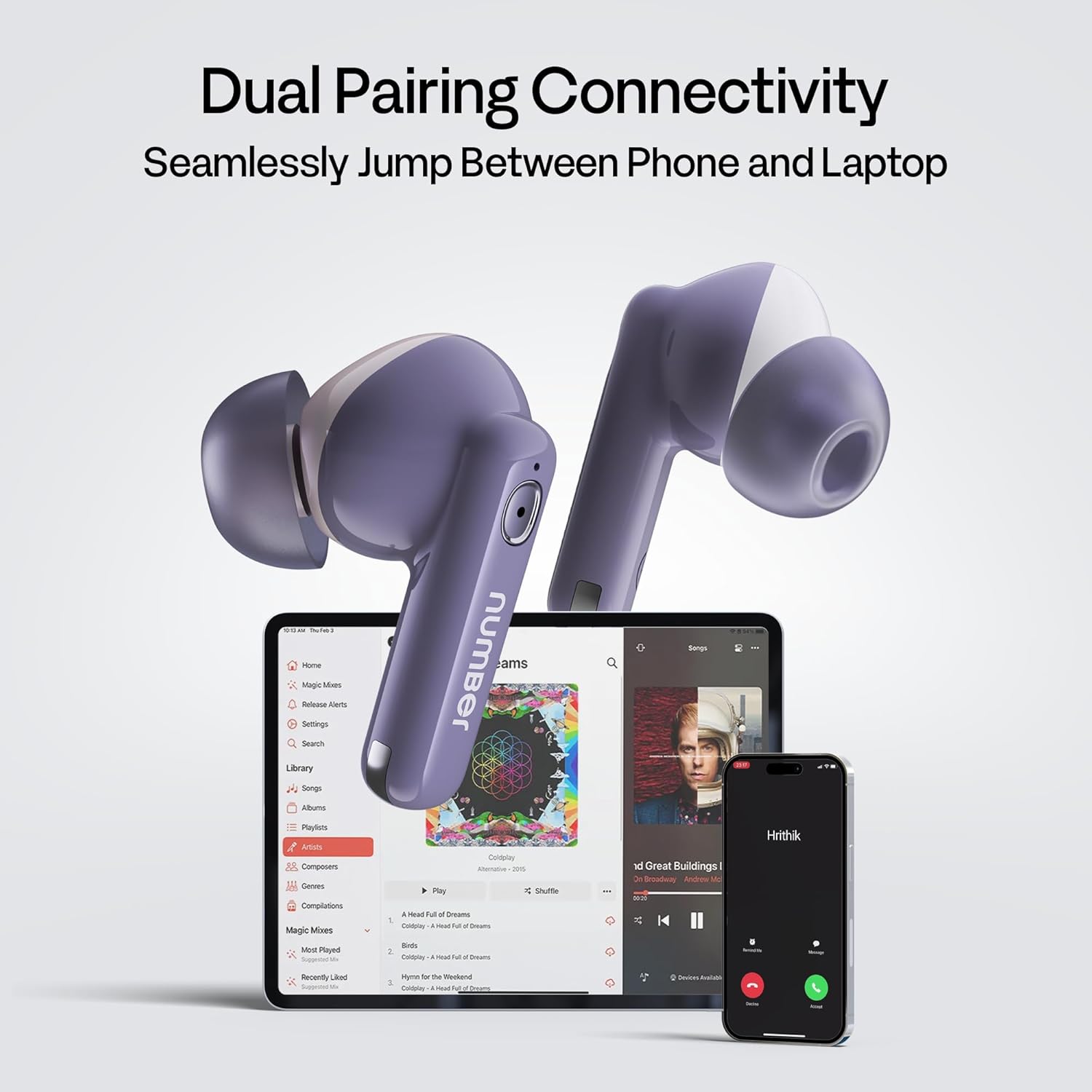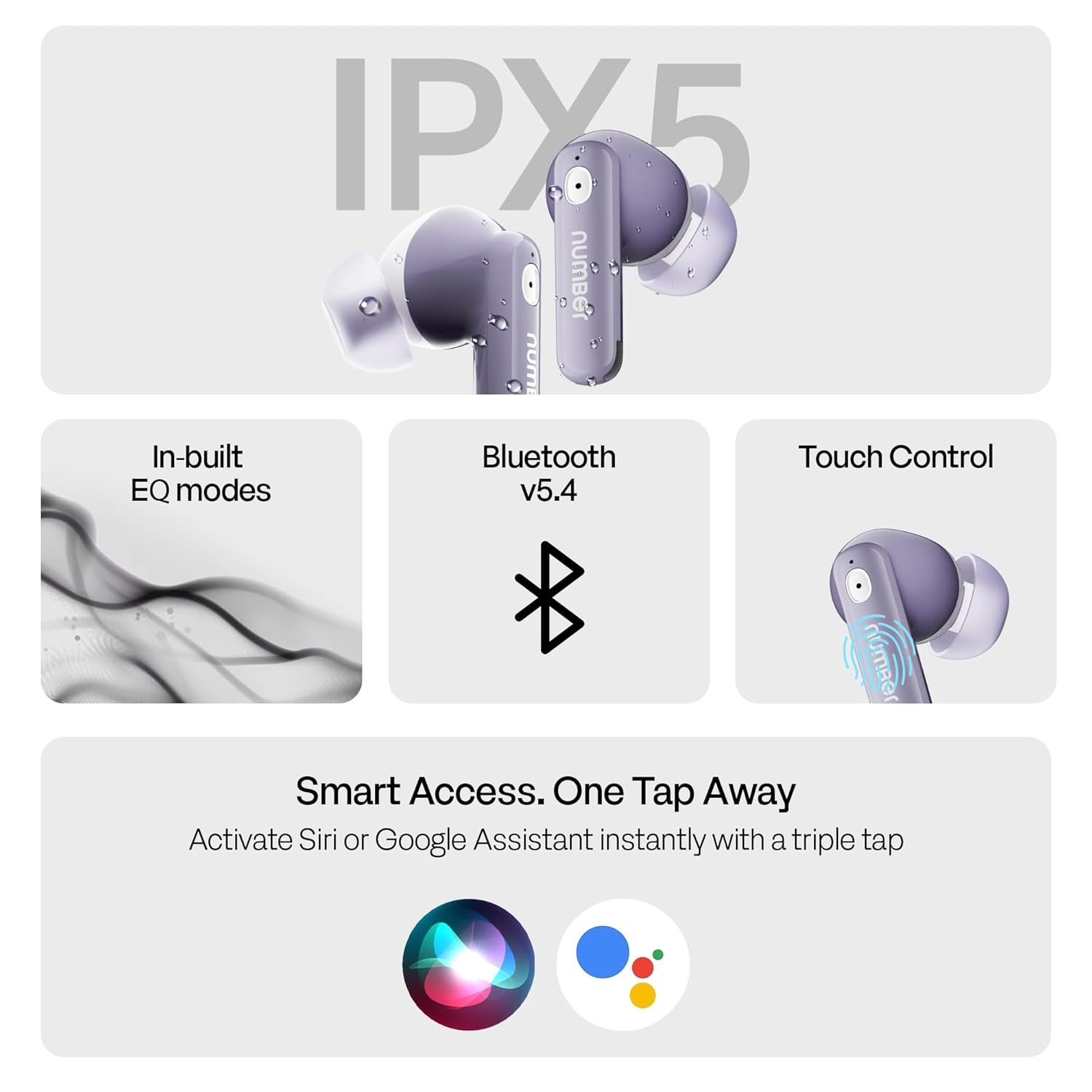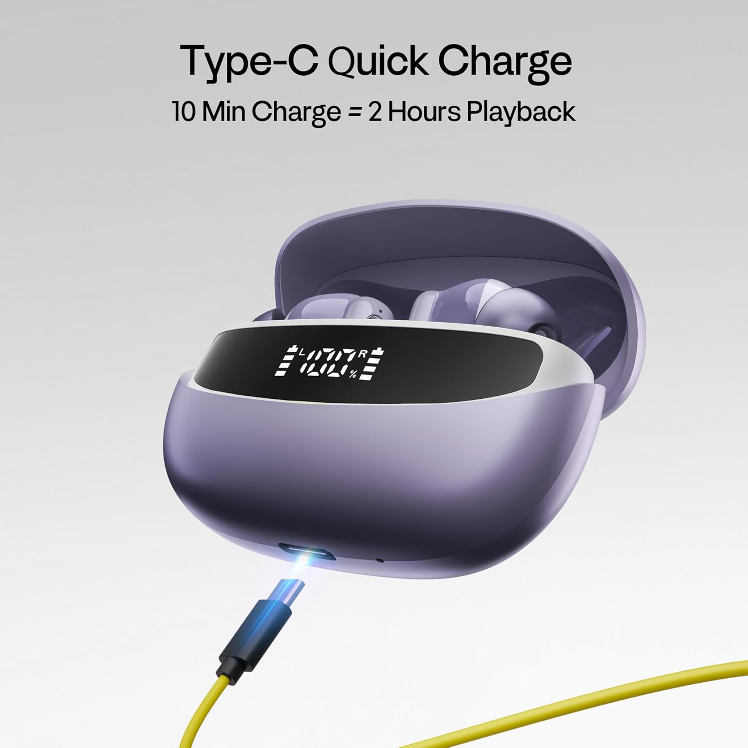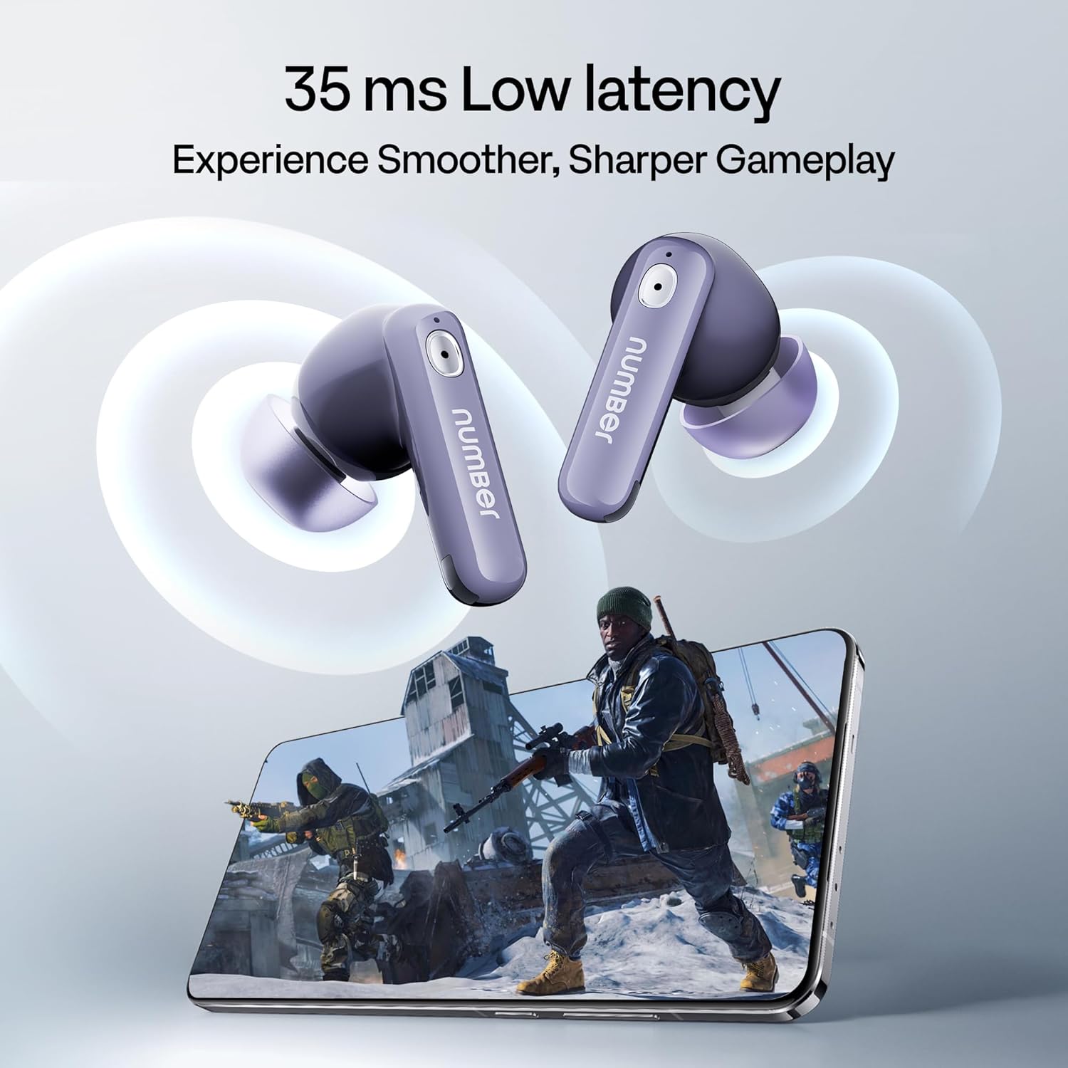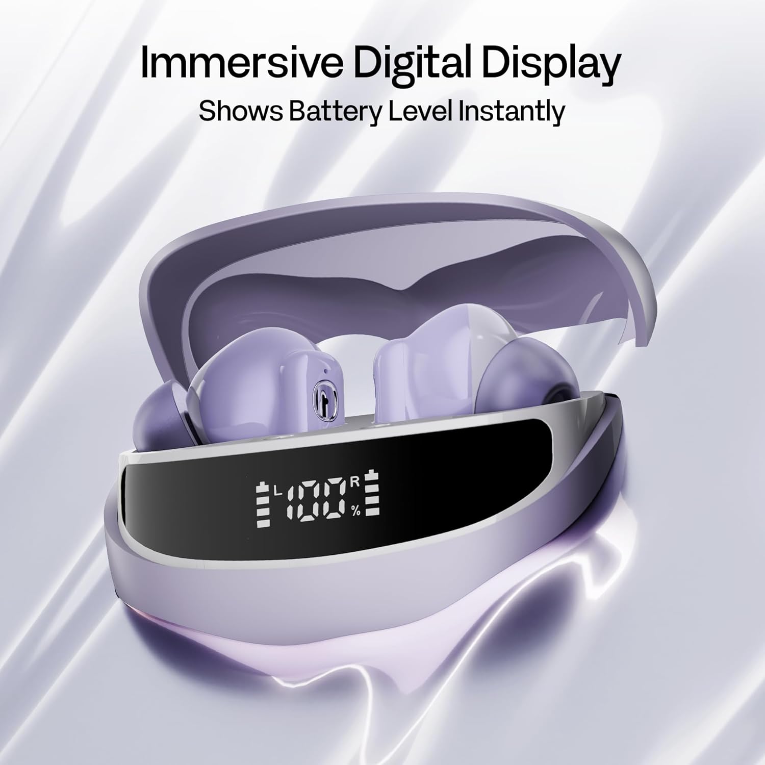 Number Navo Buds Z1 TWS Earbuds | 72H Playtime | Digital Display Case | Quad-Mic ENC | Dual Pairing | Hi-Bass 13mm Drivers | Quick Charge | 35ms Low Latency | IPX5 | Touch Controls | (Dusk Violet)