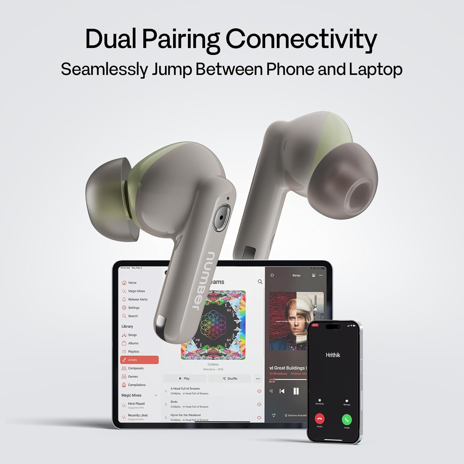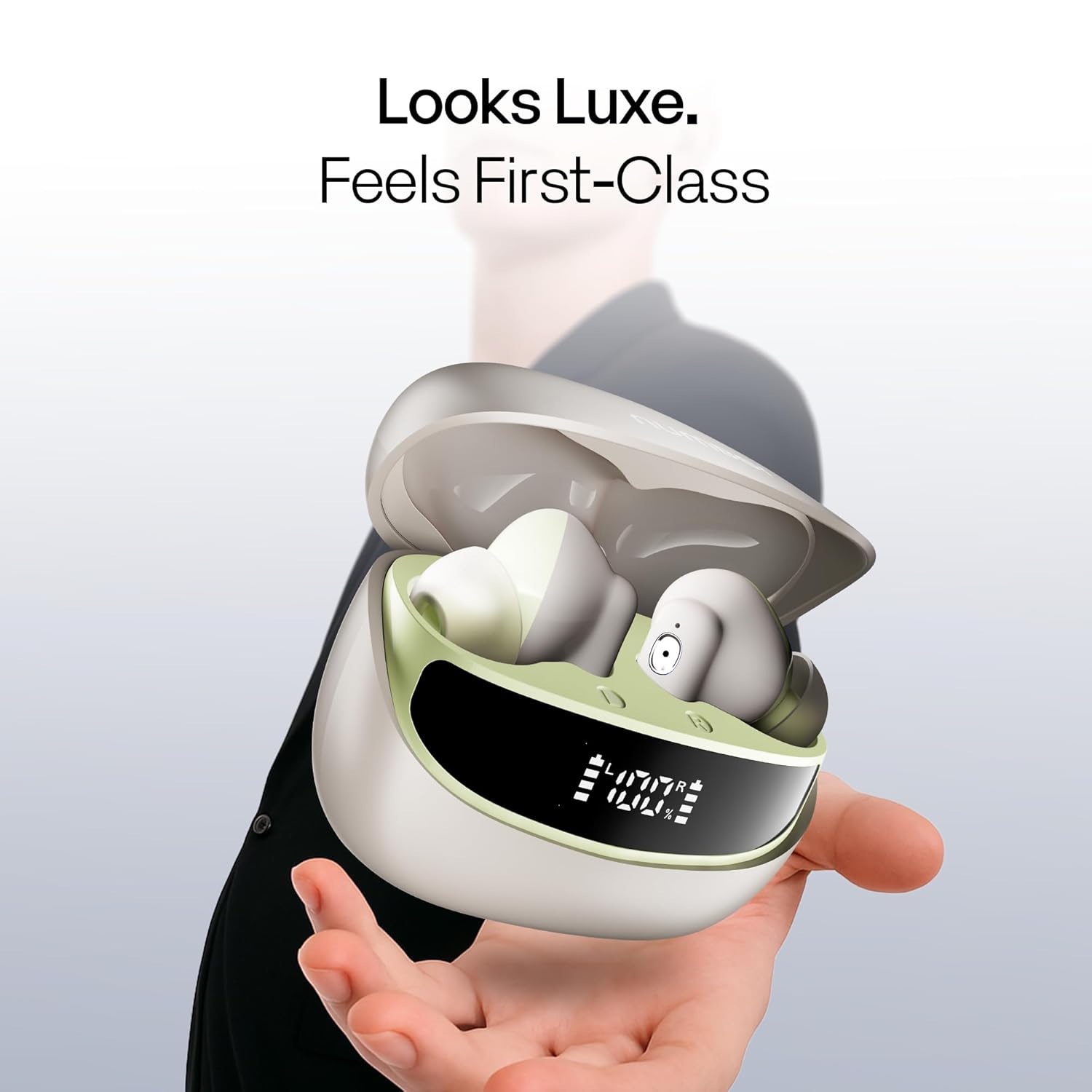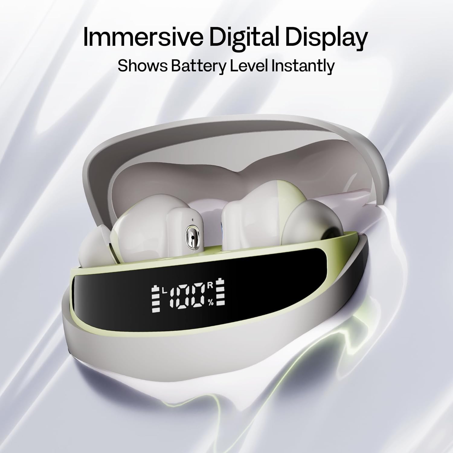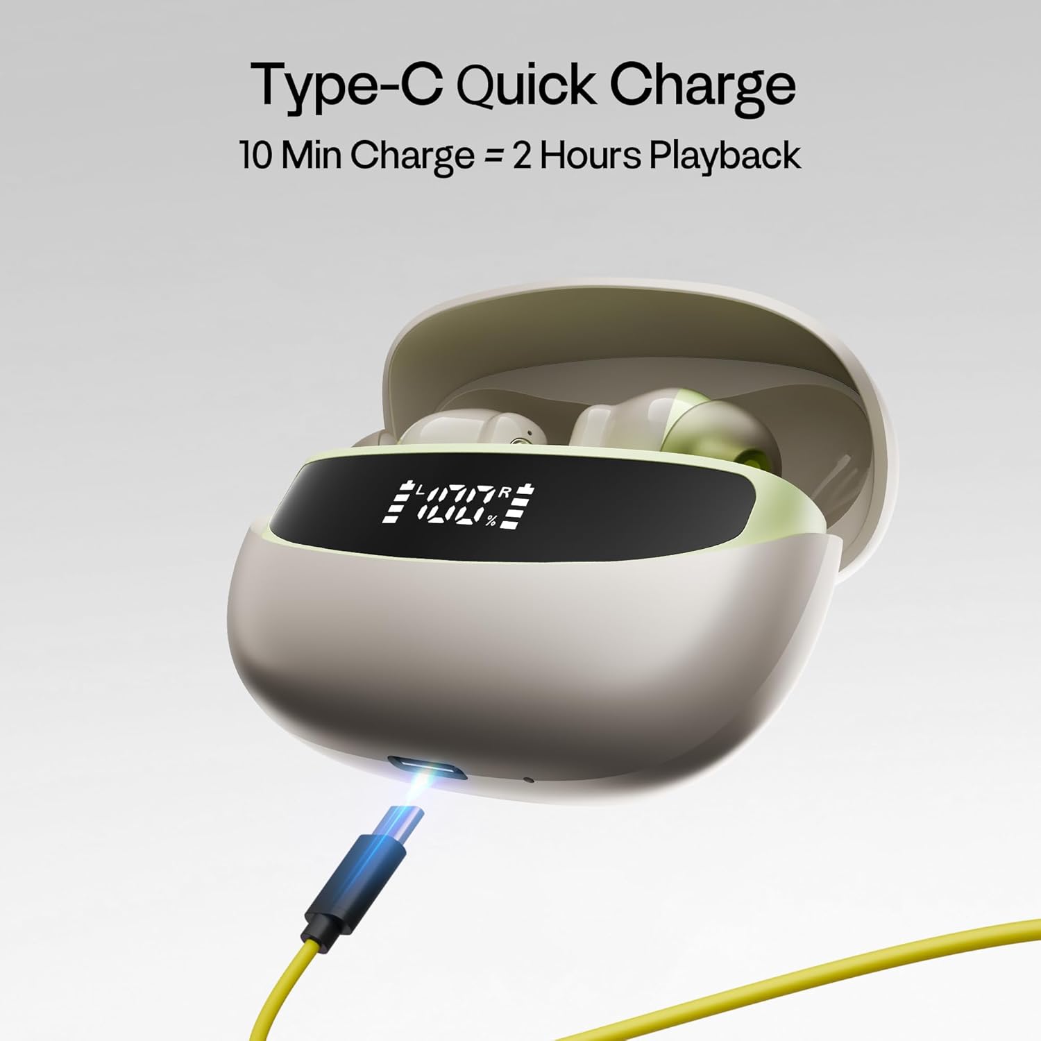 Number Navo Buds Z1 TWS Earbuds | 72H Playtime | Digital Display Case | Quad-Mic ENC | Dual Pairing | Hi-Bass 13mm Drivers | Quick Charge | 35ms Low Latency | IPX5 | Touch Controls | (Spring Beige)