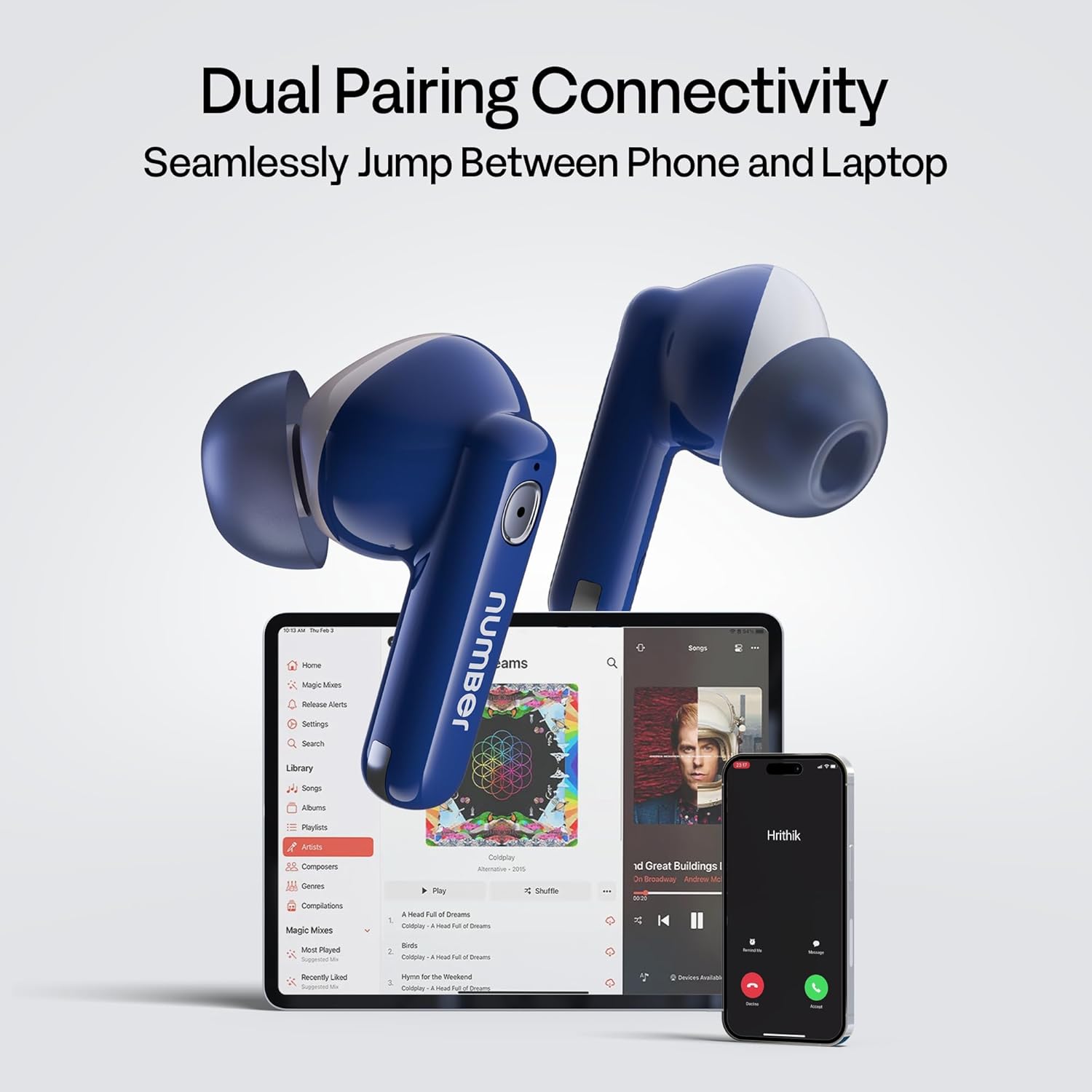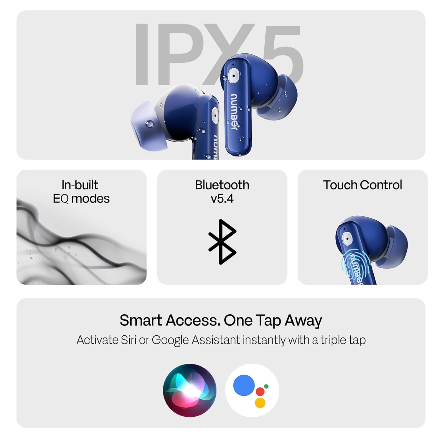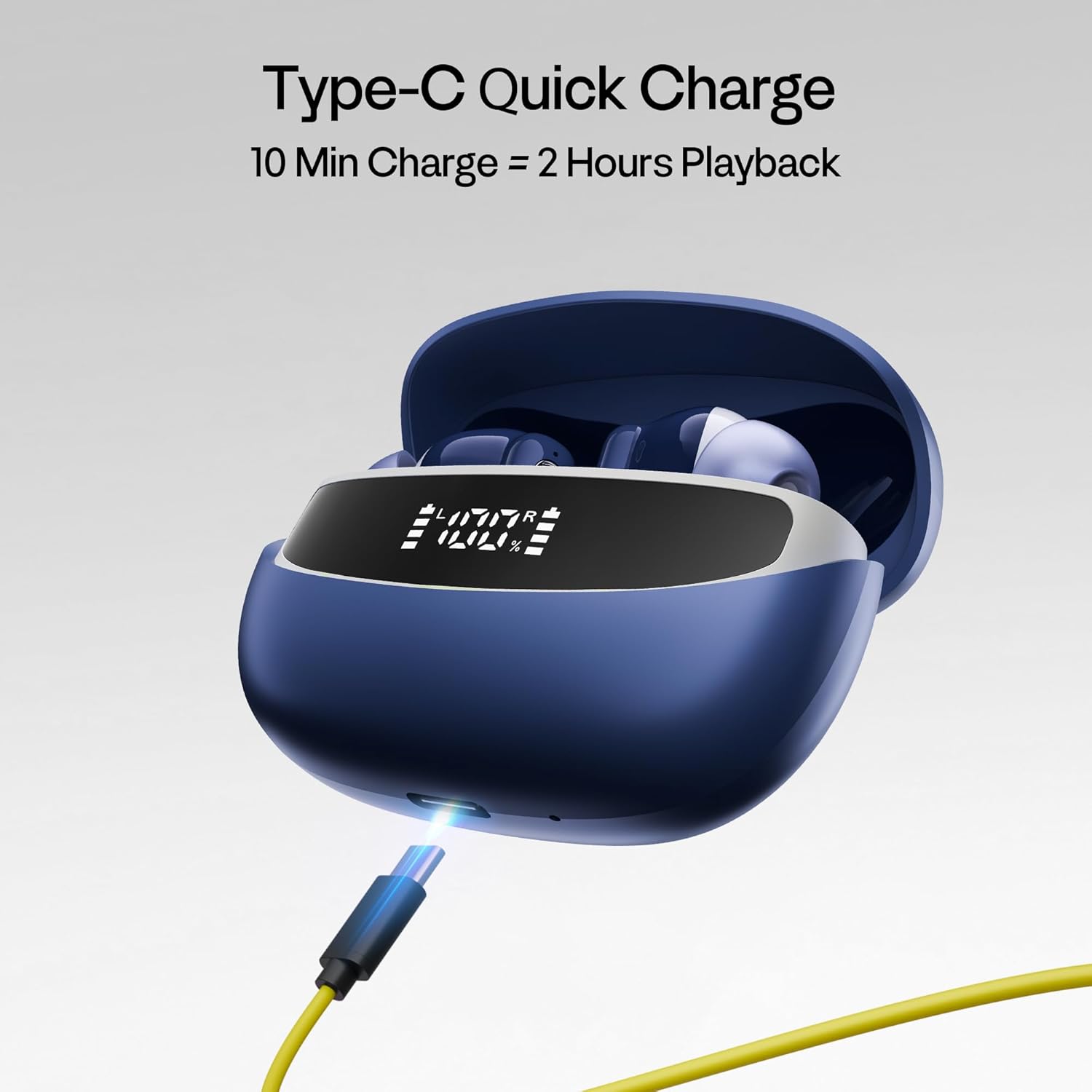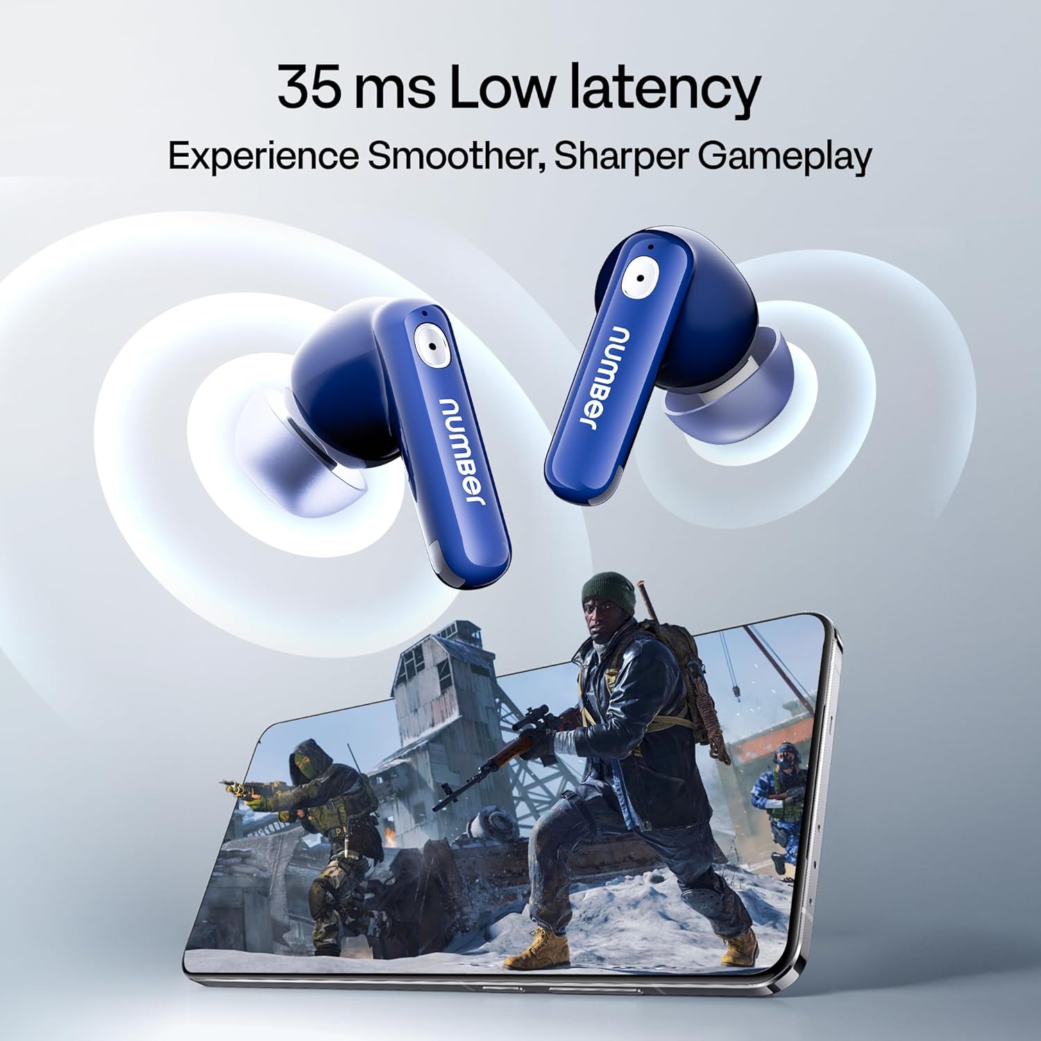 Number Navo Buds Z1 TWS Earbuds | 72H Playtime | Digital Display Case | Quad-Mic ENC | Dual Pairing | Hi-Bass 13mm Drivers | Quick Charge | 35ms Low Latency | IPX5 | Touch Controls | (Winter Blue)