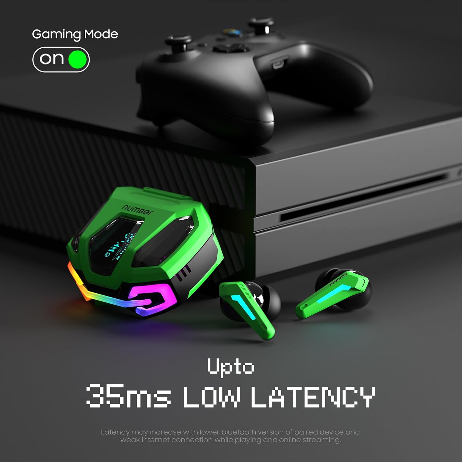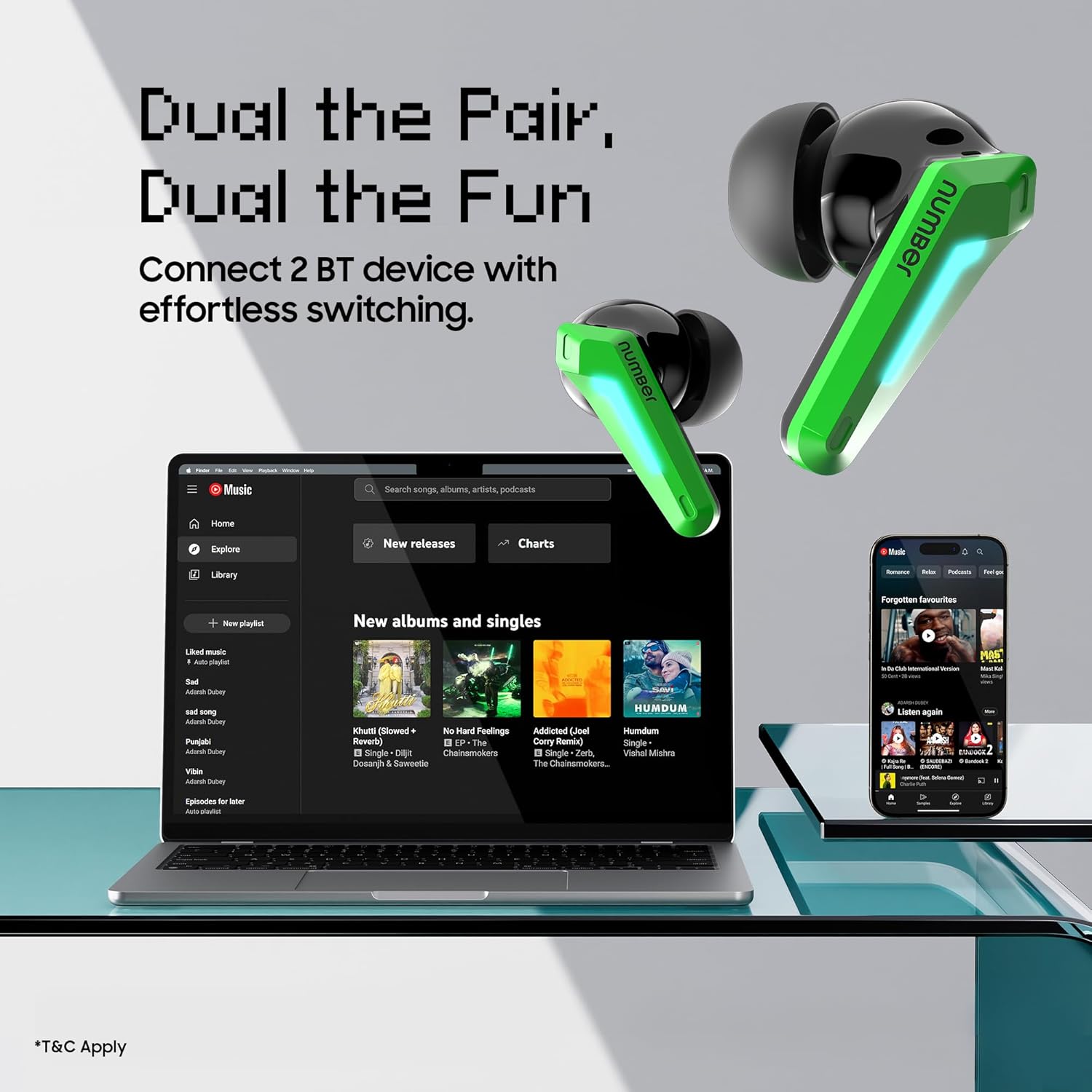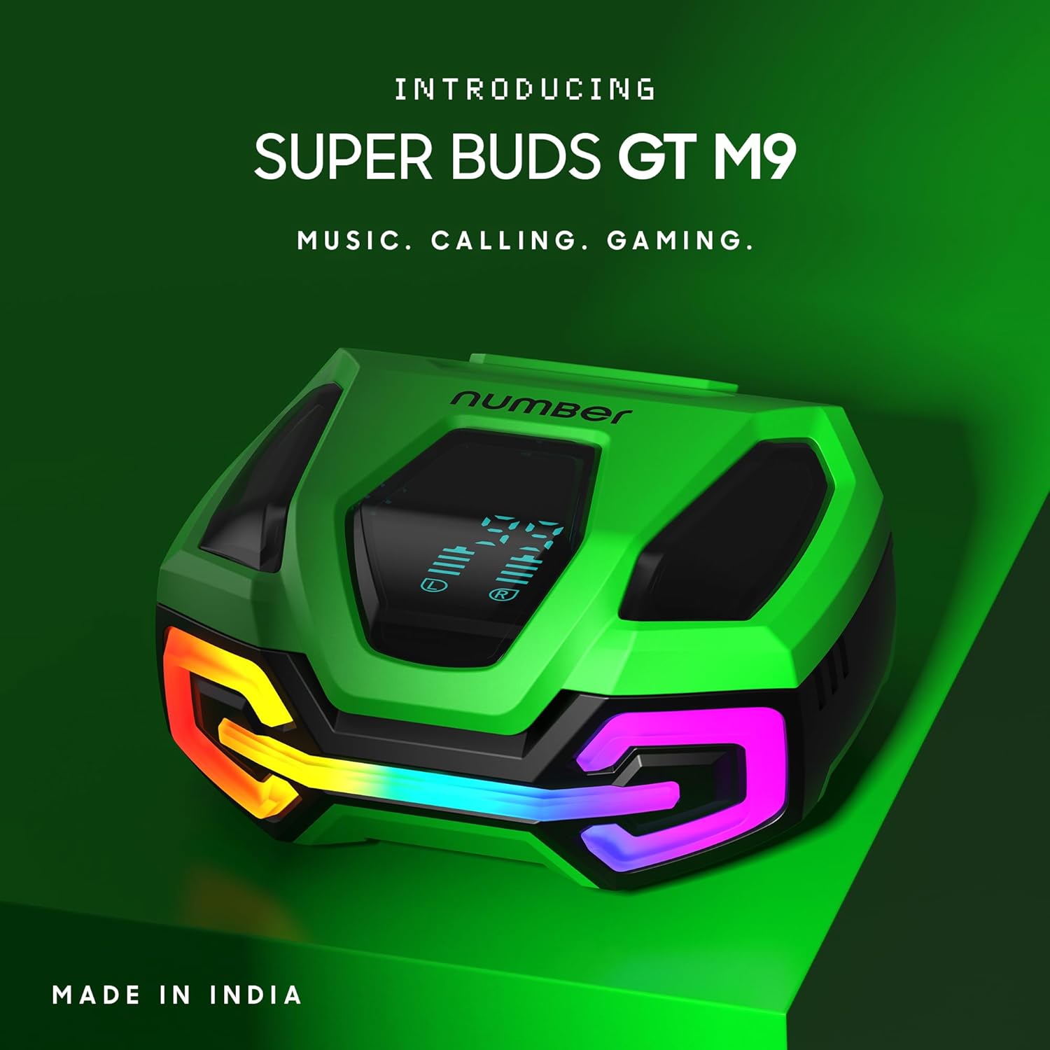 Number Super Buds GT M9 ANC (32db) Truly Wireless in Ear Earbuds with 60H Playtime, Dual Pairing Ear Buds, 35ms Low Latency, 13mm Speakers, 4Mic ENC, BT 5.4, Fast Charging, Made in India (Glass Green)