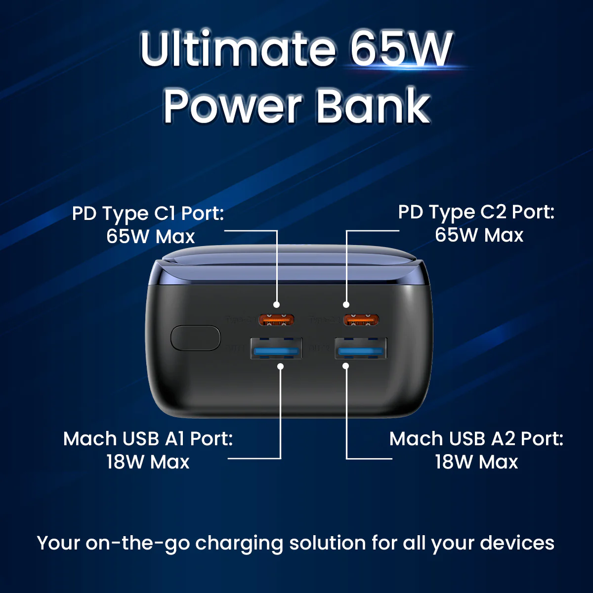 Portronics 27000 mAh 65 W Power Bank (Black, Lithium Polymer, Fast Charging for Mobile, Laptop)