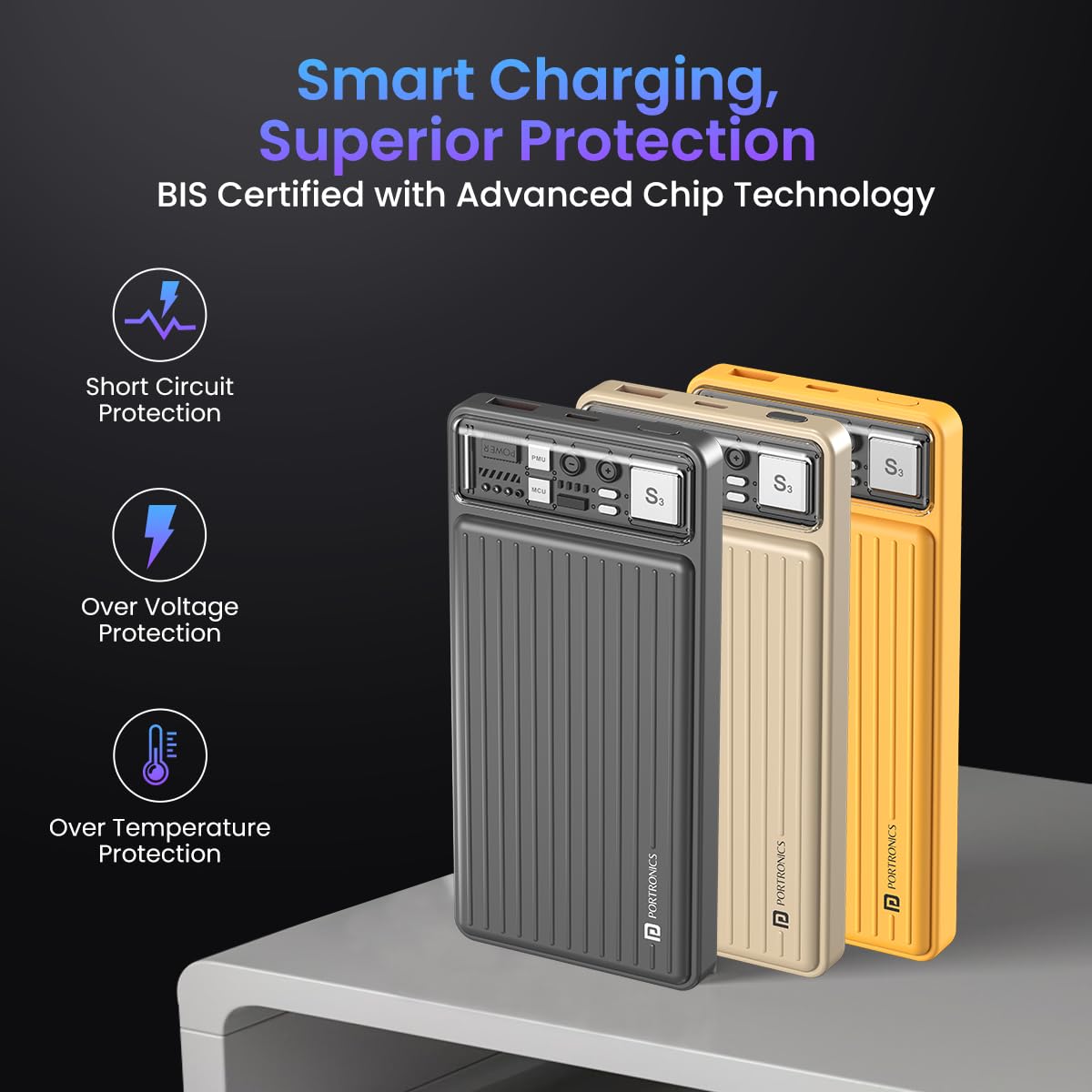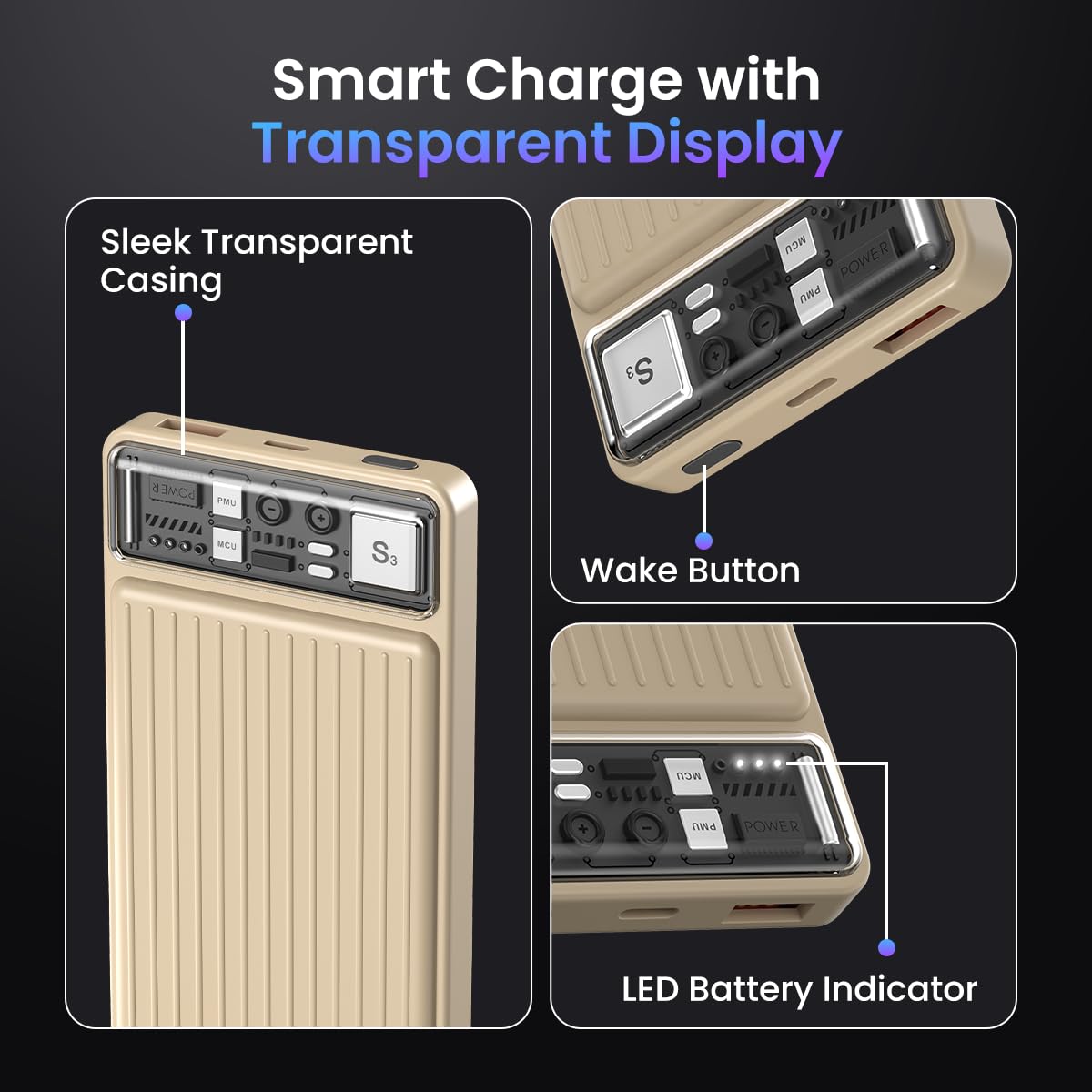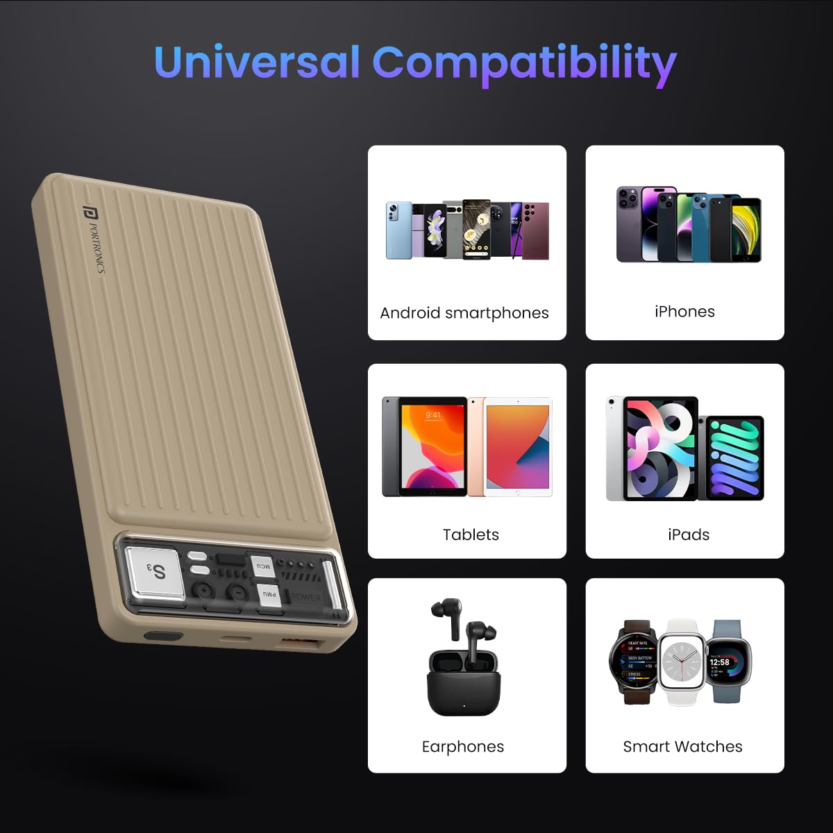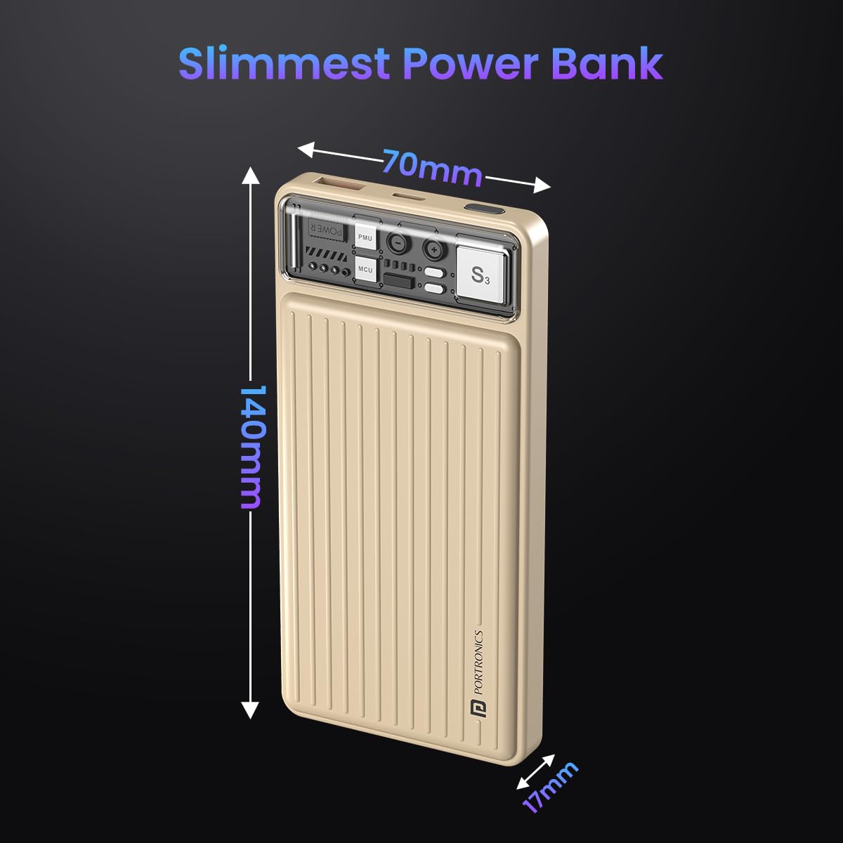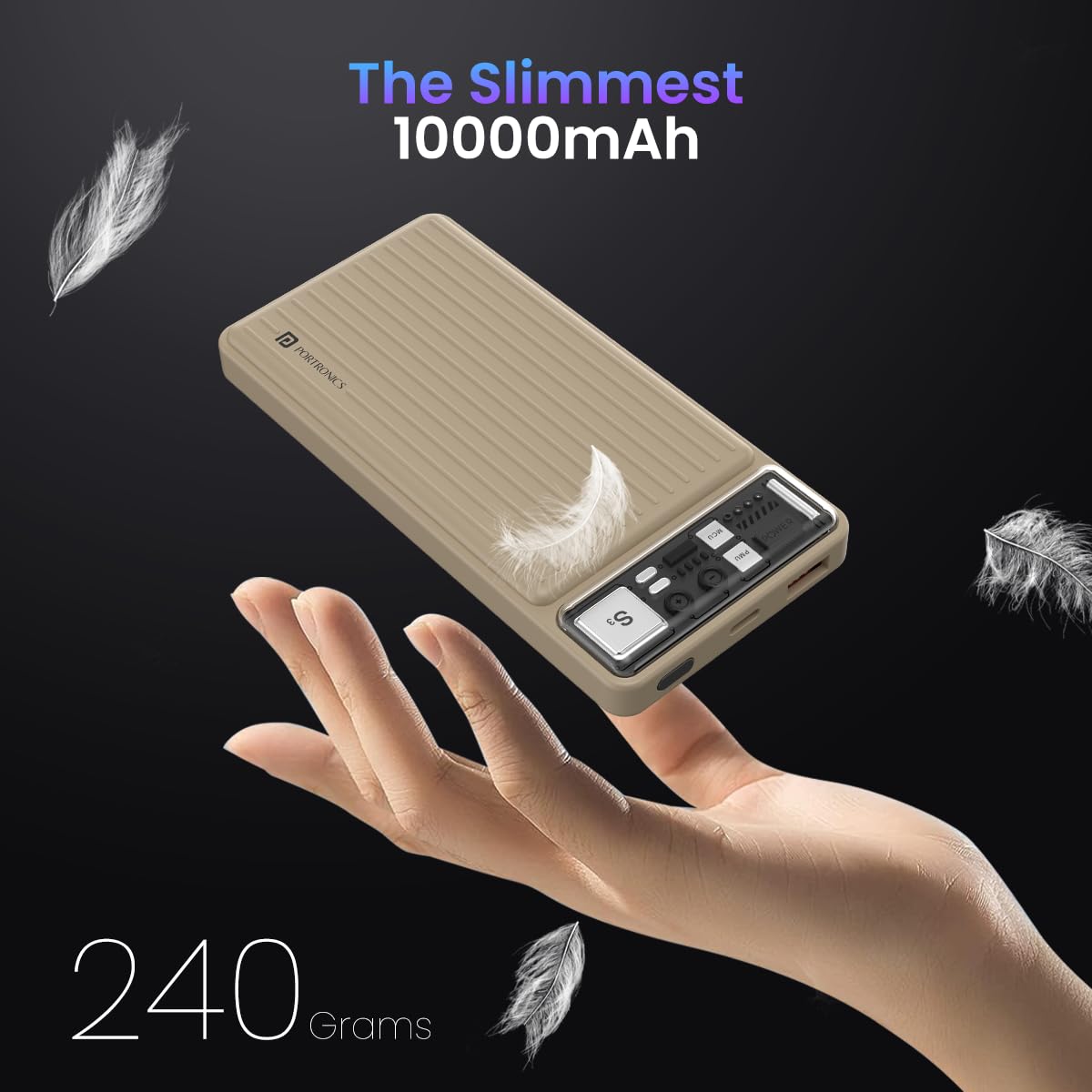 Portronics Luxcell 10K 10000 mAh Designer Power Bank with 22.5W Max Output, LED Indicator, Mach USB-A Output, Type C PD Output, Type C Input, Wake Up Button(Ivory White)