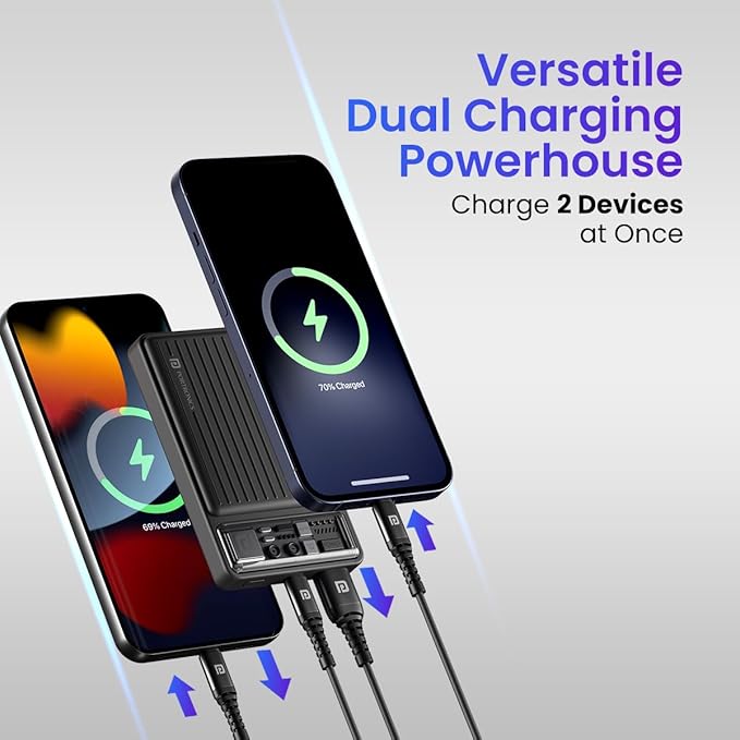 Portronics Luxcell Mini 10K Advanced 10000 mAh Nano Power Bank with 22.5W Max Output, LED Indicator, Mach USB-A Output, Type C PD Output, Type C Input, Wake Up Button(Black)