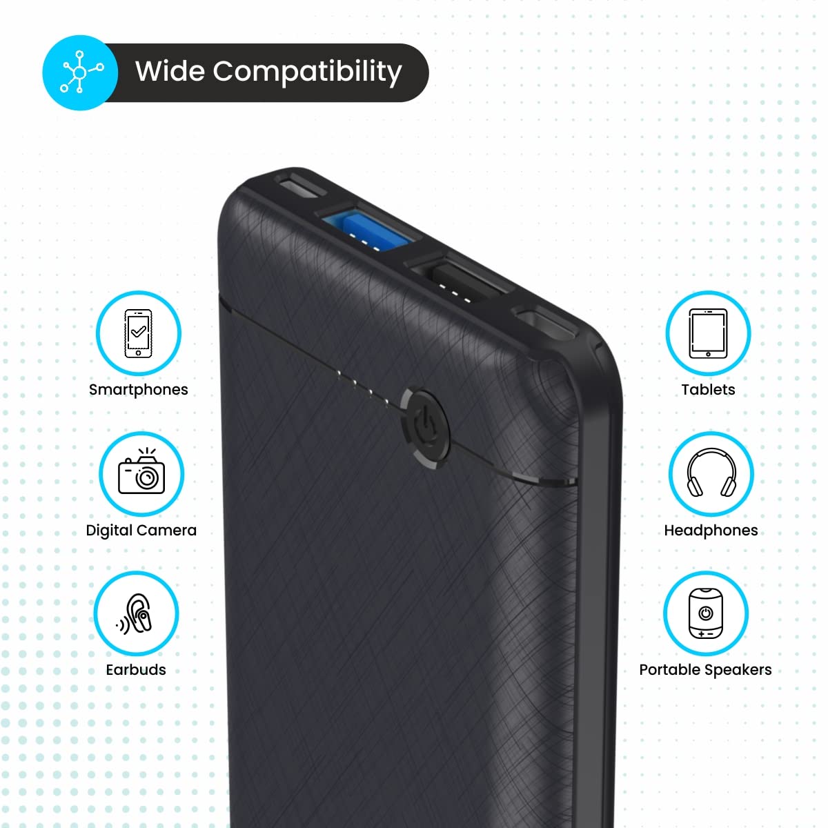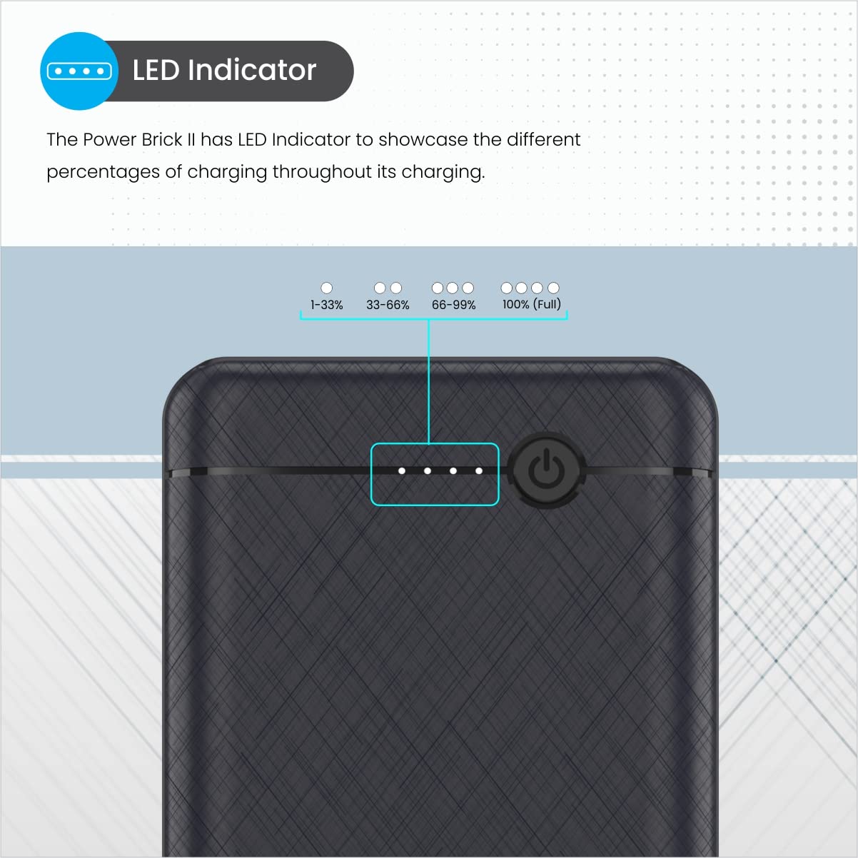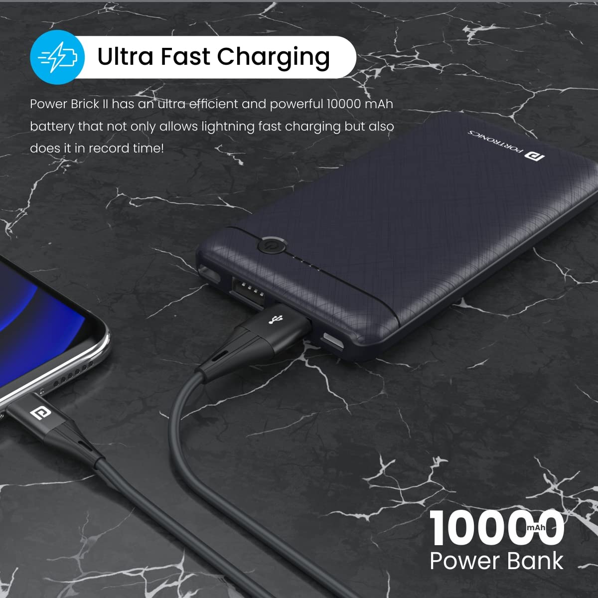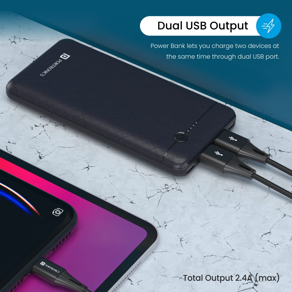 Portronics Power Brick II 10000 mAh,2.4A 12w Slim Power Bank with Dual USB Output Port for iPhone, Anrdoid & Other Devices.(Blue)