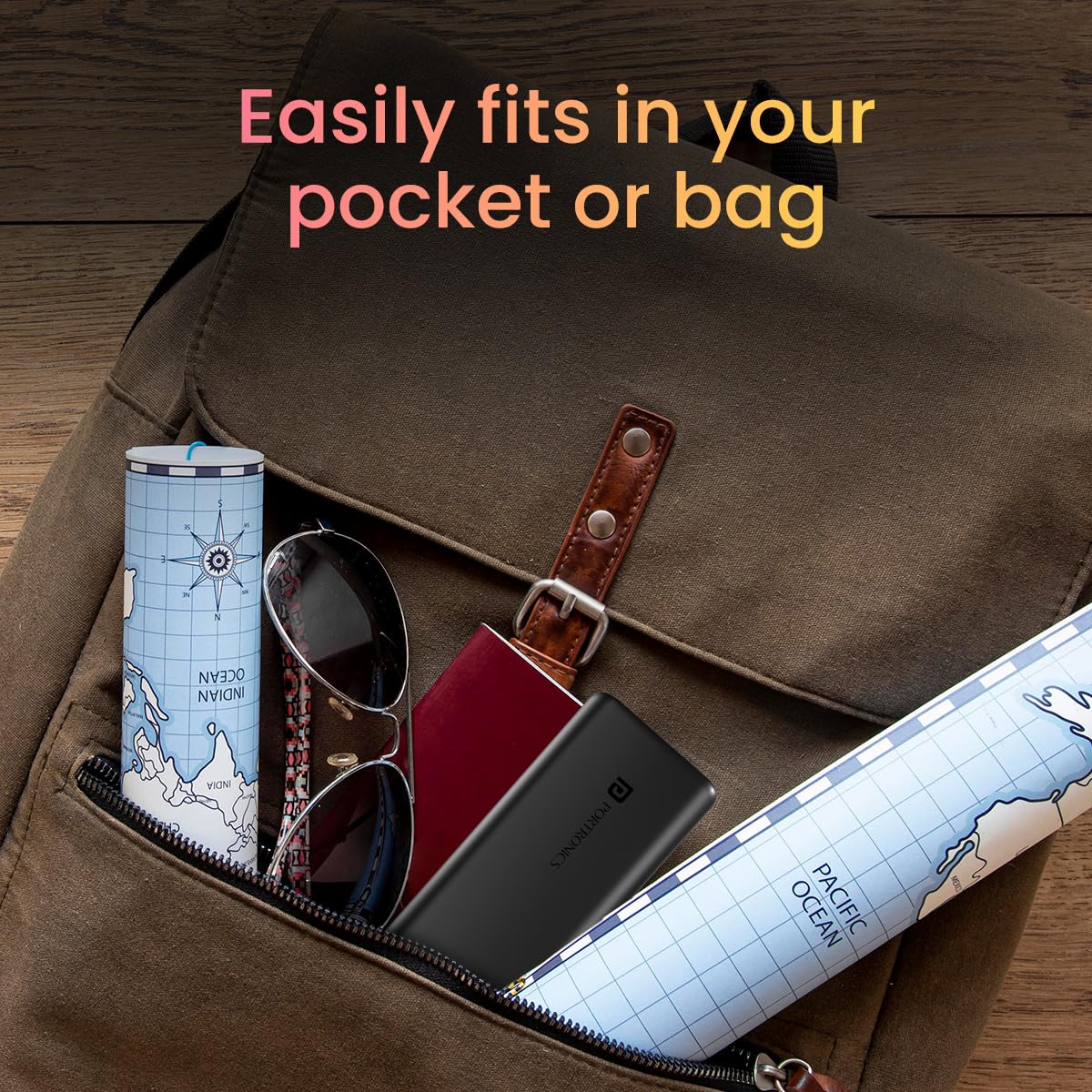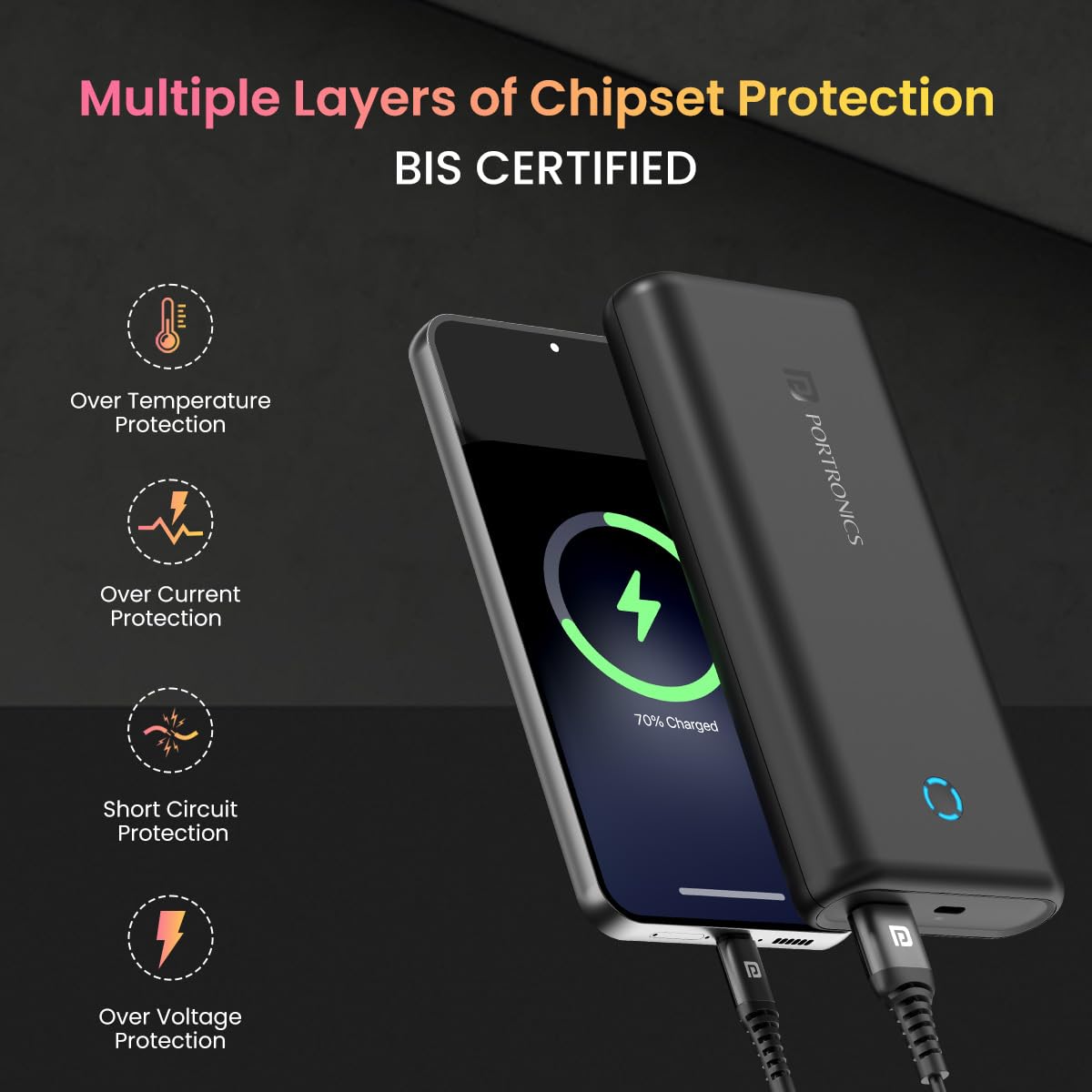 Portronics PowerPod 20K Advanced 20000 mAh Power Bank with 22.5W Max Output, Fast Charging Power Bank with 22.5W Mach USB-A & 20W Type C PD Output,Type C Input (Black)