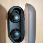 The cylindrical charging case is extremely small and easy to carry around in a pocket or bag.