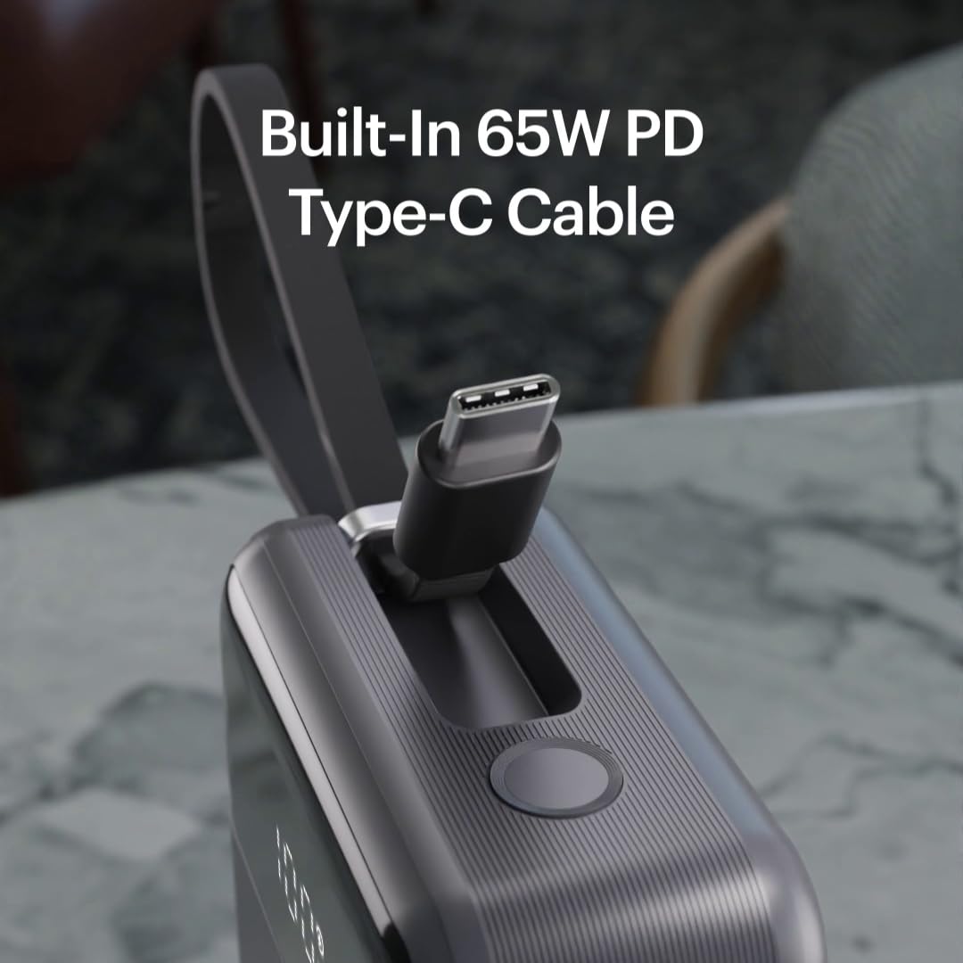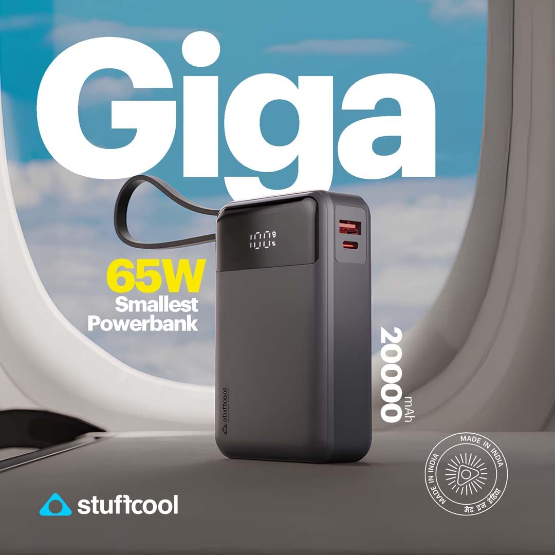 Stuffcool GIGA Smallest 65W 20000mAh Laptop Powerbank with Built in 100W 5A Type C Cable,Charges MacBook air 0-100%,MacBook pro laptops 0-90%,Supports superfast Charging 2.0,fastcharges iPhone,Pixels