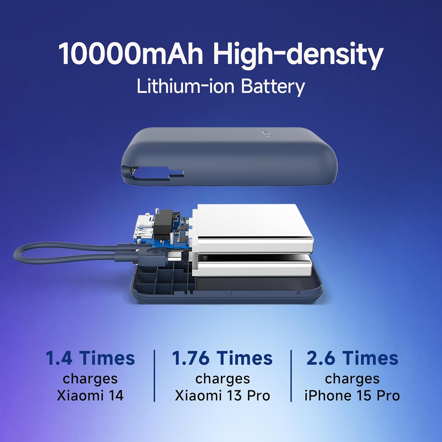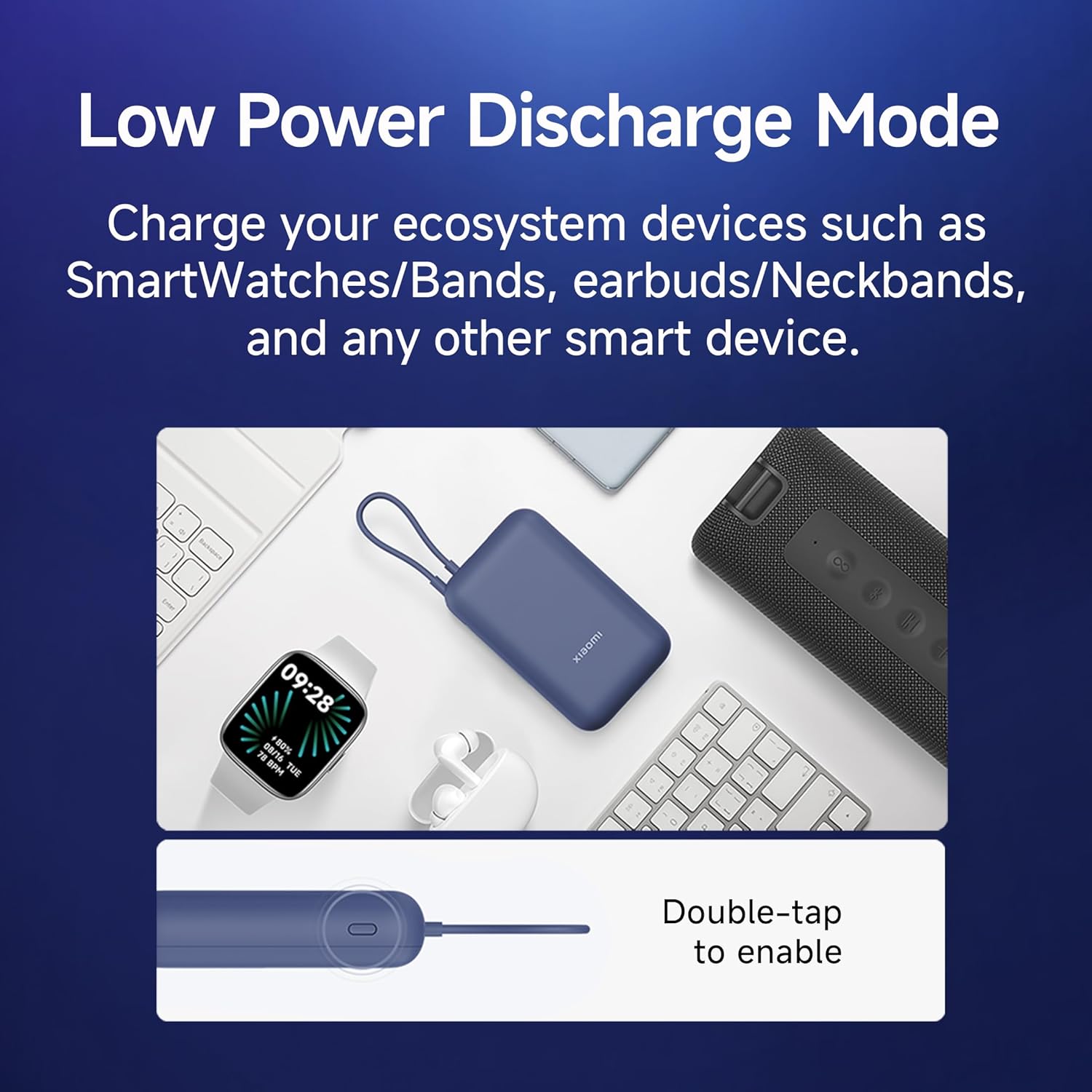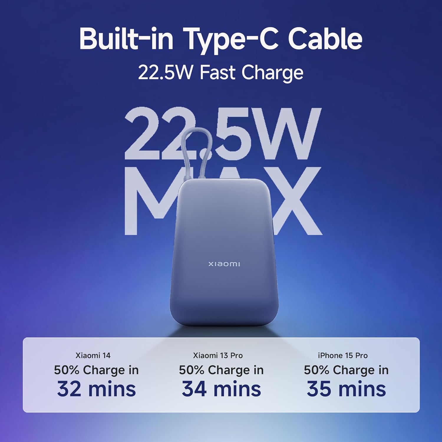 Xiaomi Pocket Power Bank 10000mAh 22.5W with Built-in Cable | Super Fast Charging PD |Smart 12 Layer Protection|Triple Output Ports|Supports Android,Apple, Tablets, Earbuds,Watch(MI Powerbank),Blue